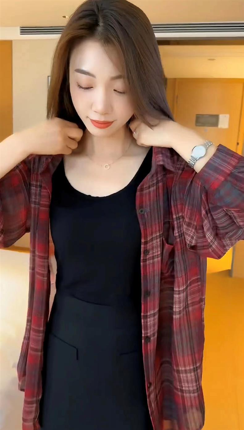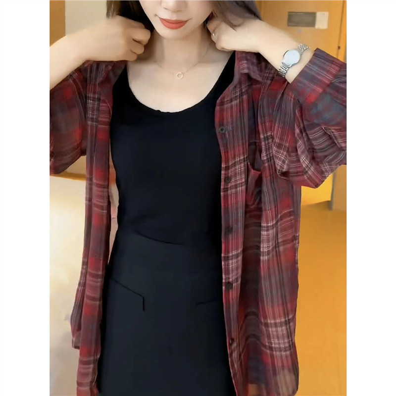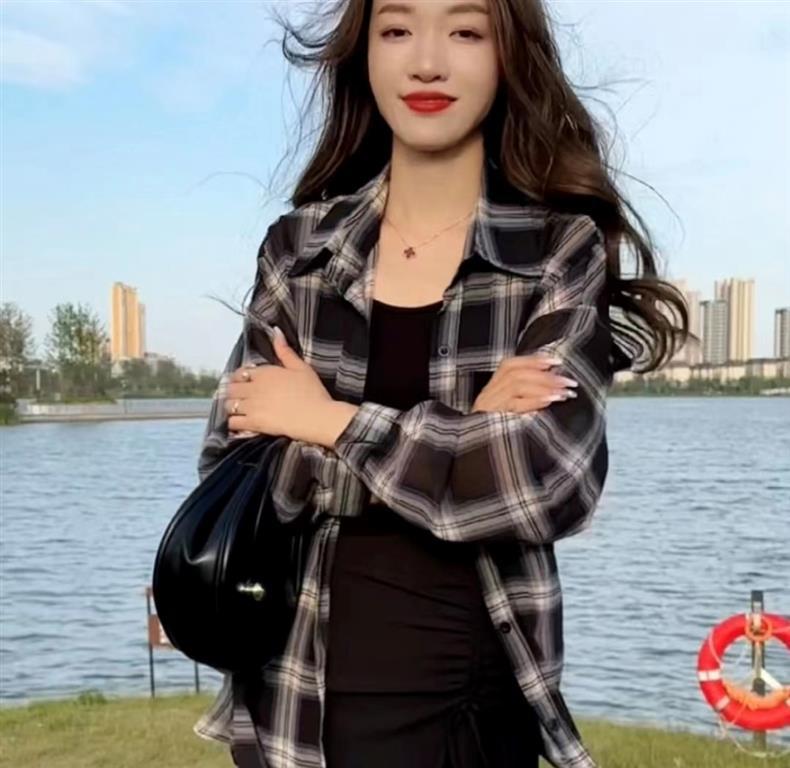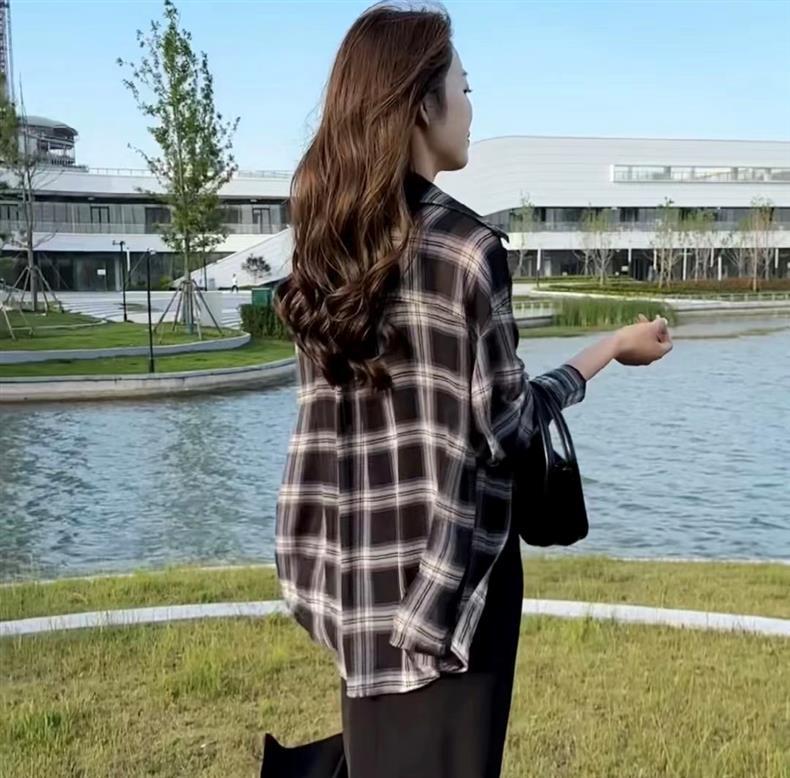체크 무늬 셔츠 여성용 긴 소매 최고 여름 2025 새로운 우아한 캐주얼 느슨한 얇은 코트스토어 가기