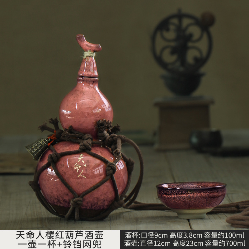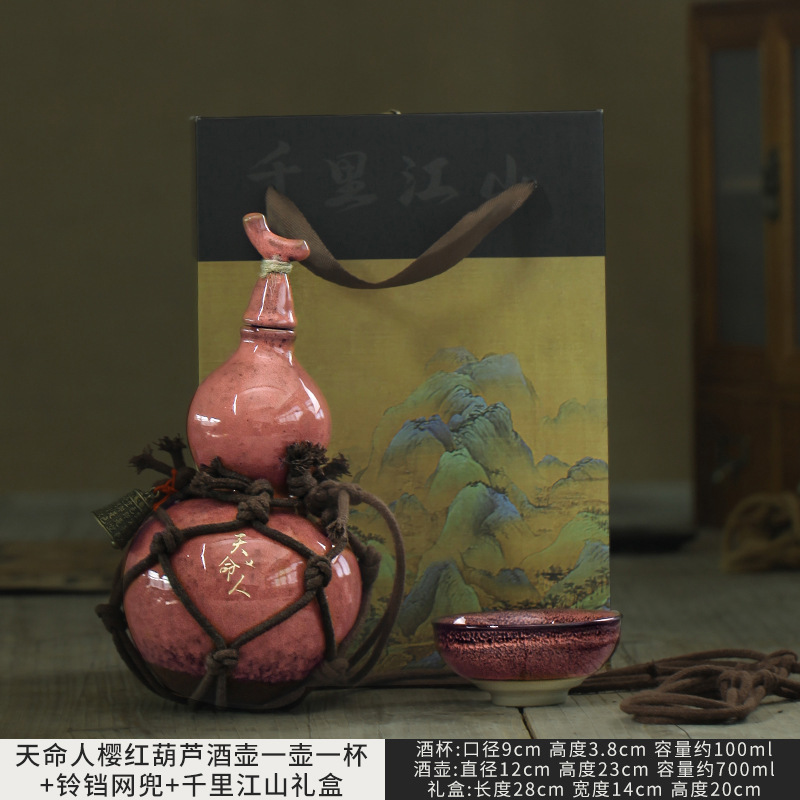 • 천명인 벚꽃 레드 와인 조롱박 + 대각선 벨 네트 포켓 + Qianli Jiangshan 선물 상자