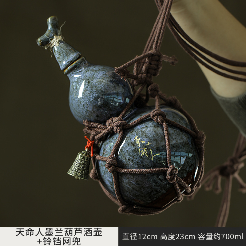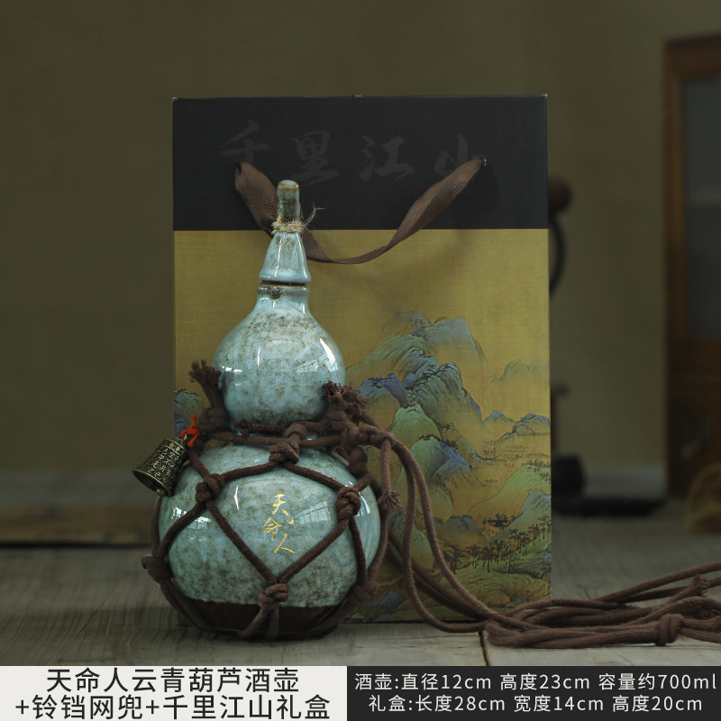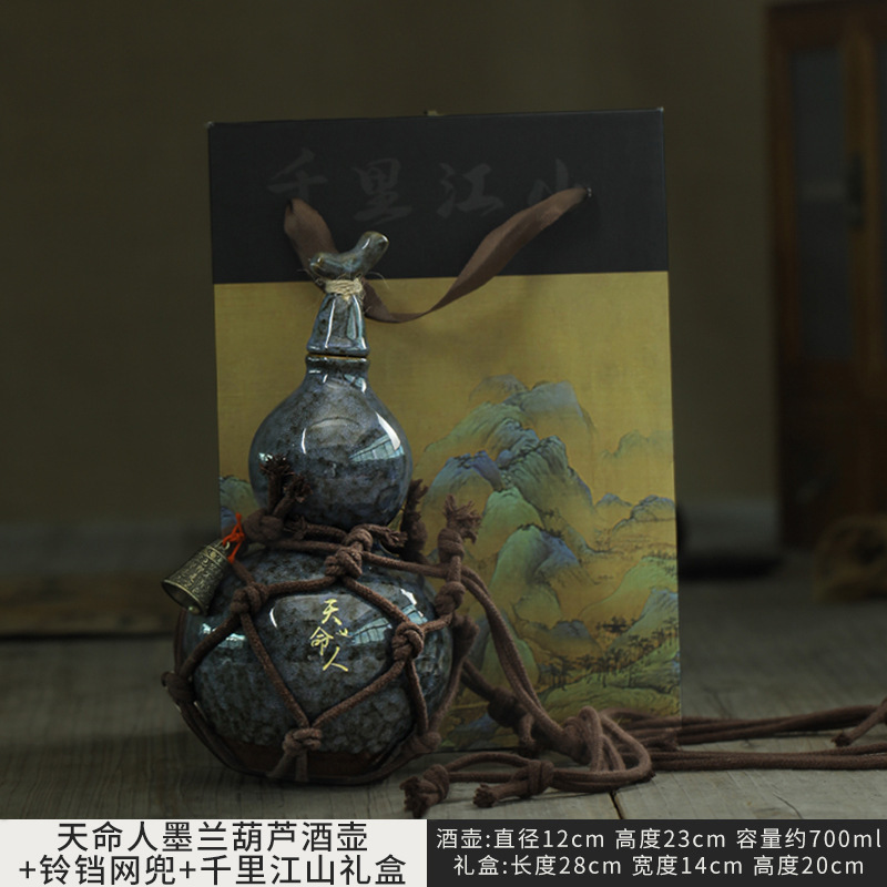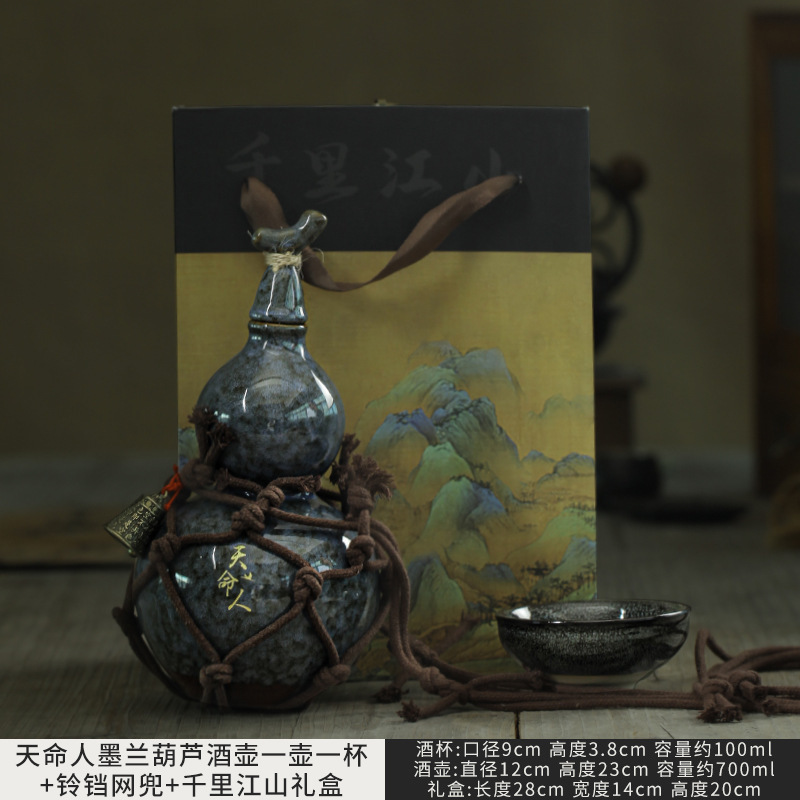 • Tianmingren Molan Wine Gourd + 큰 컵 1개 + 대각선 벨 네트 백 ++ Qianli Jiangshan 선물 상자