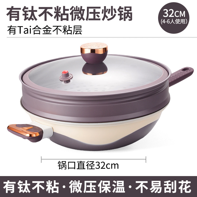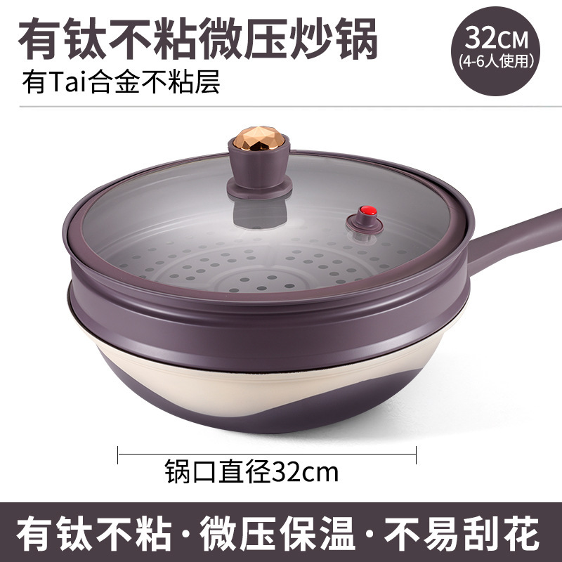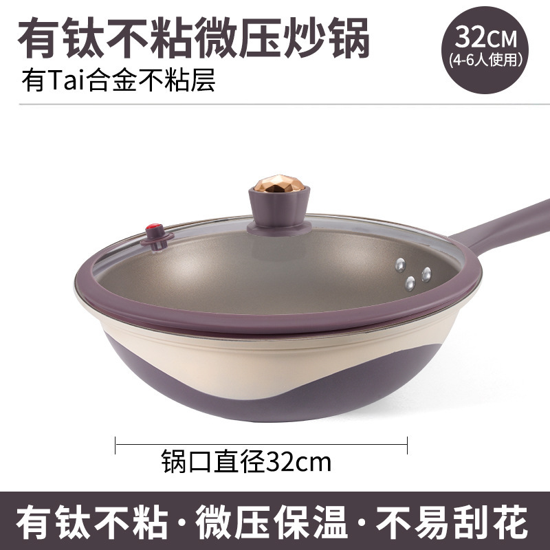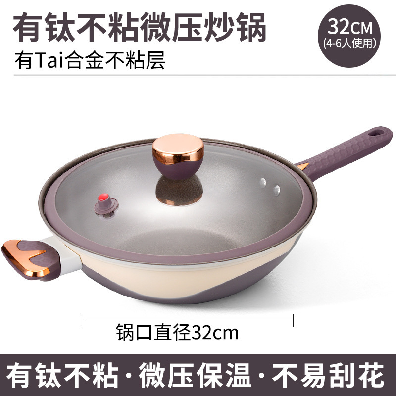 Douyin 인터넷 연예인 2색 티타늄 붙지 않는 팬, 저연기 조리용 마이크로 압력 냄비, 전자기 가스 범용