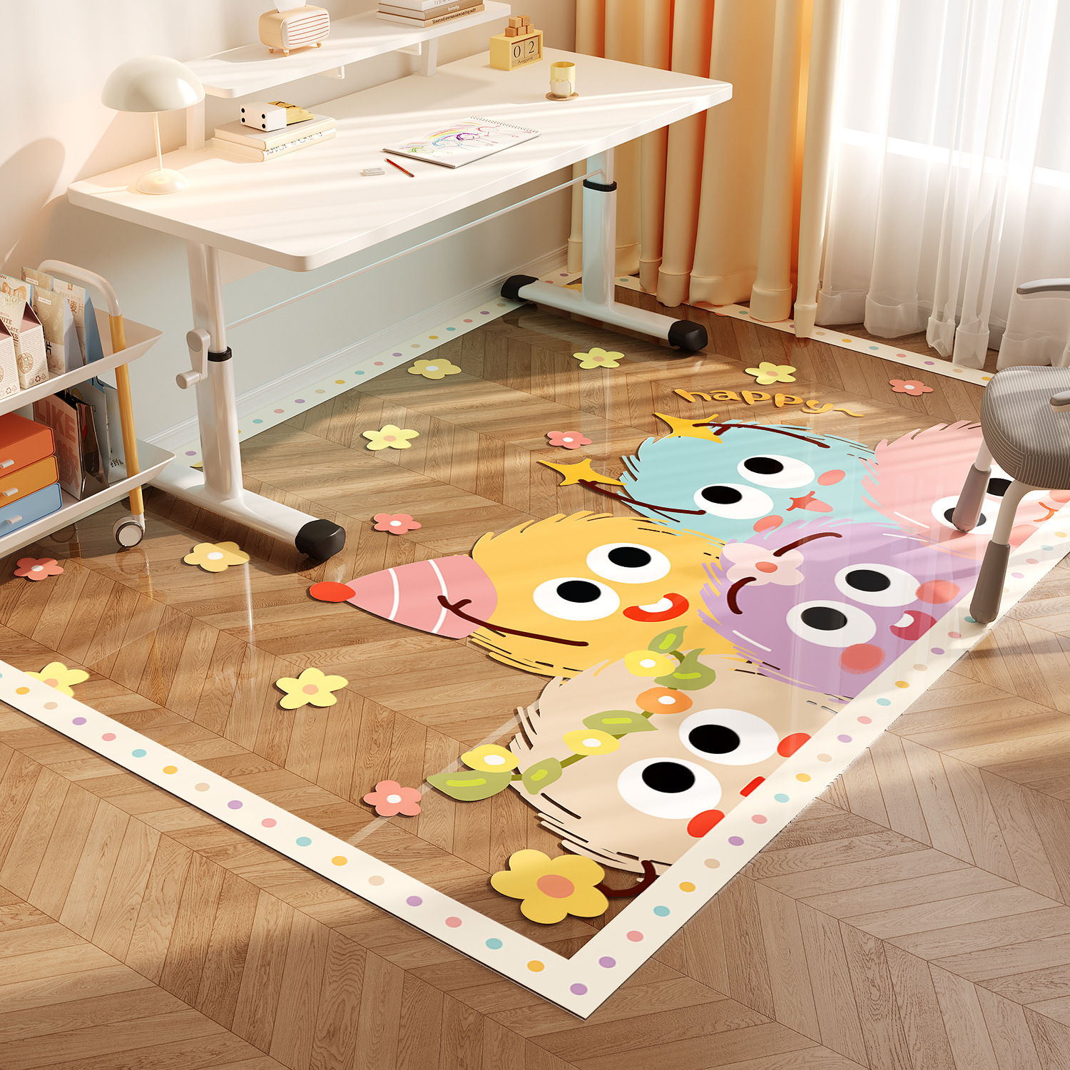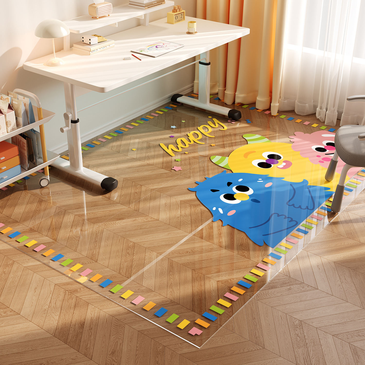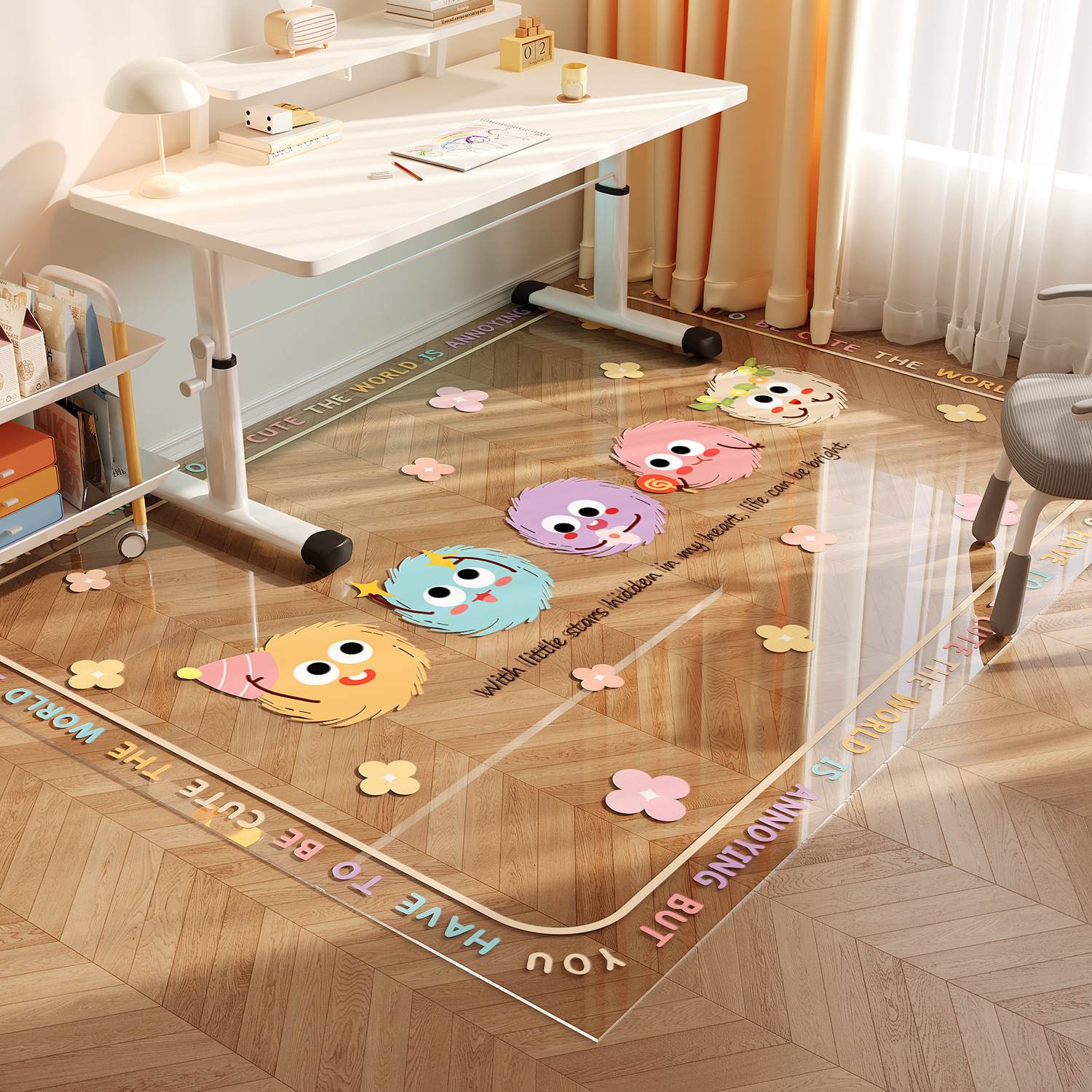 만화 투명한 바닥 매트 방수 미끄럼 방지 세척 가능한 컴퓨터 회전 의자 카펫 필름 거실 단단한 나무 바닥 보호 매트