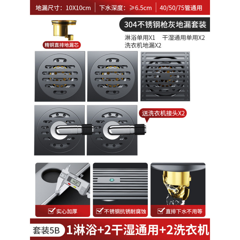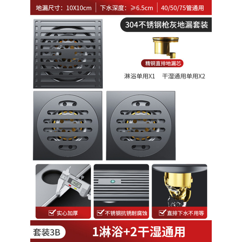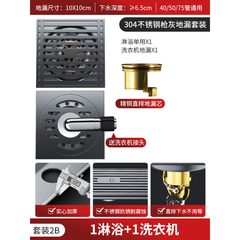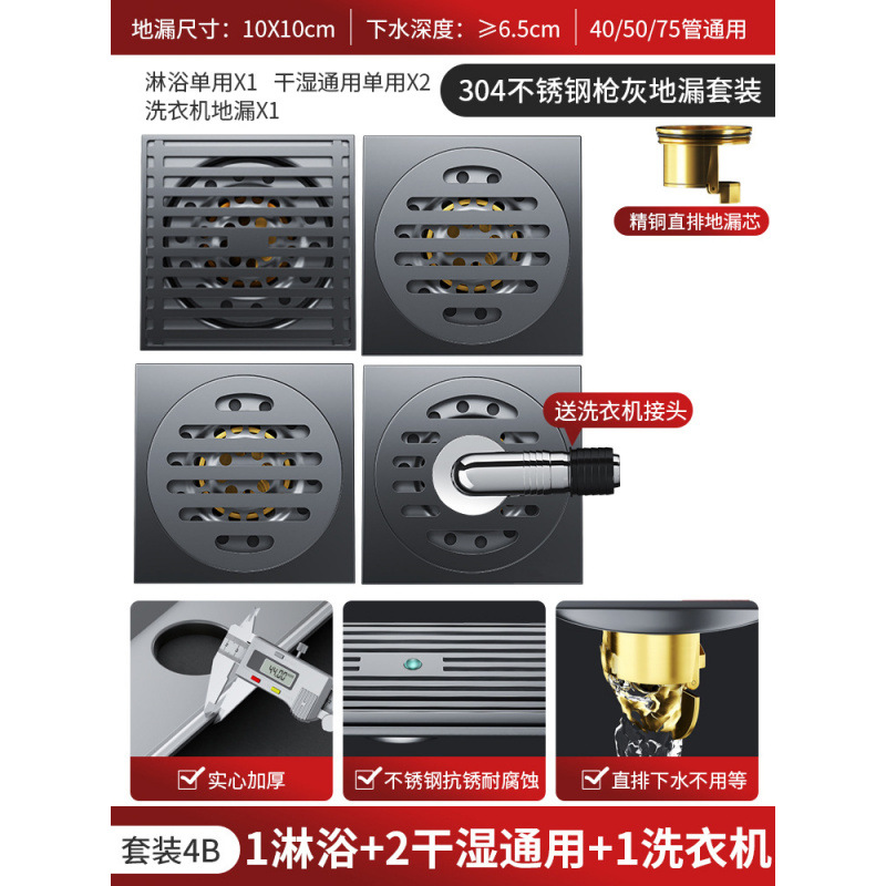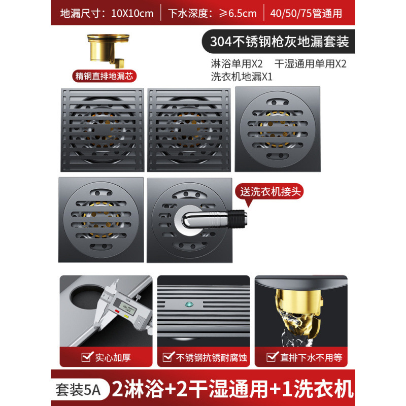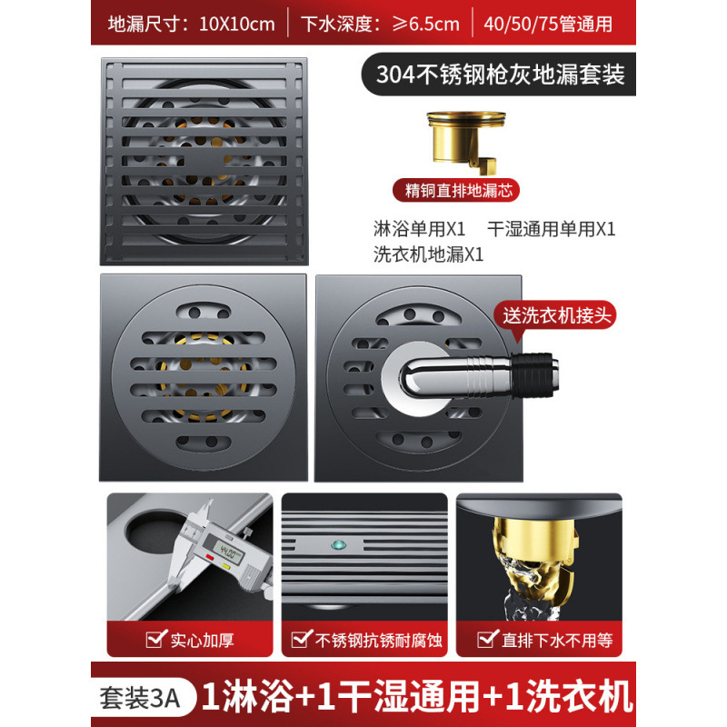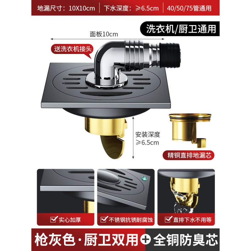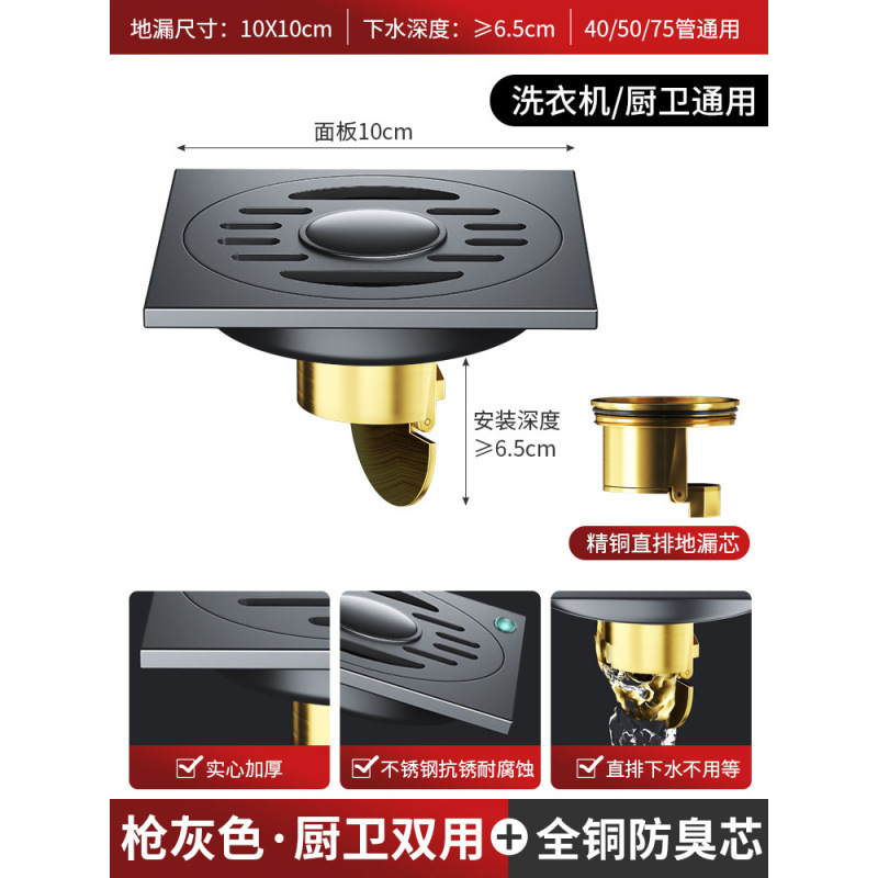 304 총 회색 바닥 배수 모든 구리 코어 안티 버그 화장실 욕실 발코니 샤워 실 세탁기 스트립 큰 변위