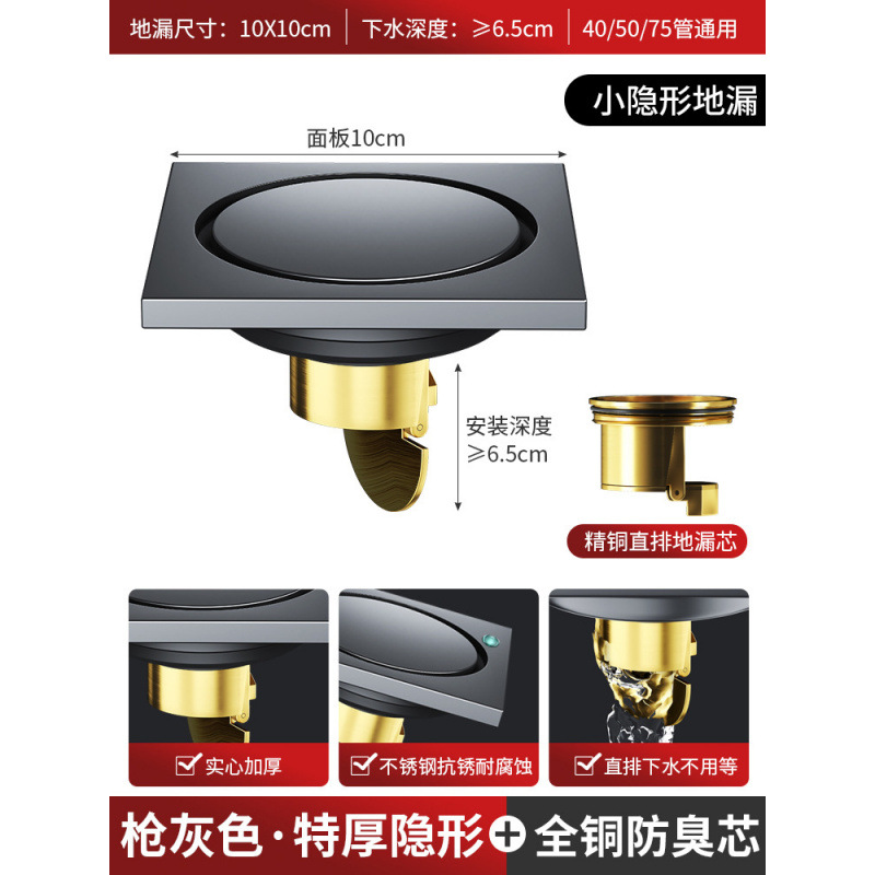 • 두꺼운 총 회색 [전체 구리 코어] 둥근 보이지 않는 바닥 배수구