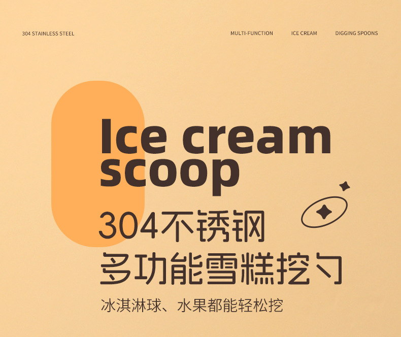 304 스테인리스 아이스크림 숟가락 창조적 인 다기능 탄력 아이스크림 숟가락 과일 공 파는 수박 공 파는 사람