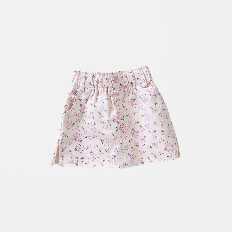 한국 아동복 여름 2025 새로운 어린이 치마 서양식 소녀 한국 꽃 오버 스커트 워시 코튼 스커트