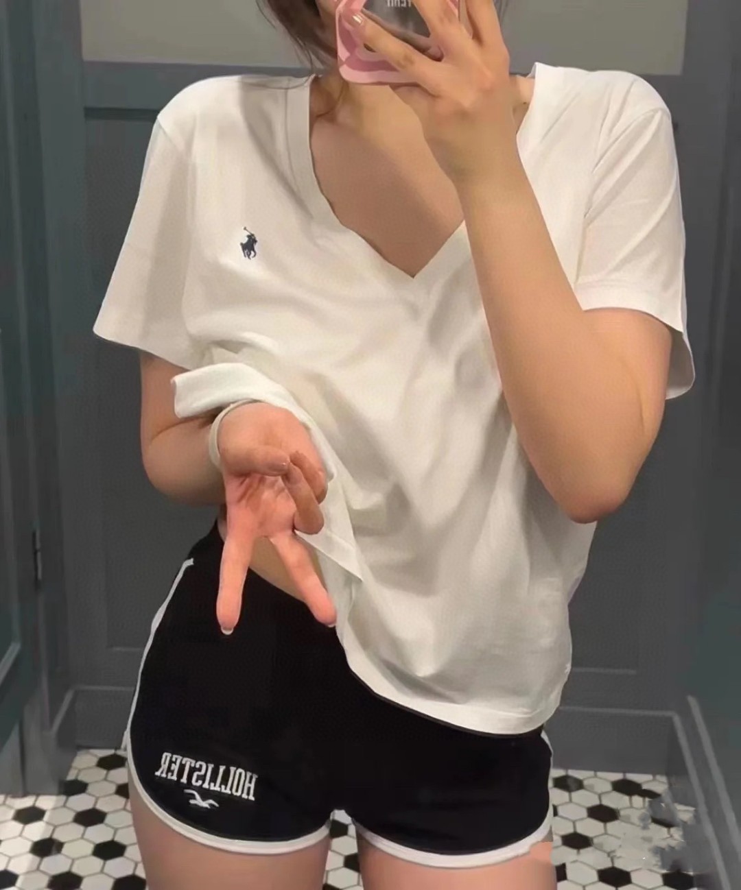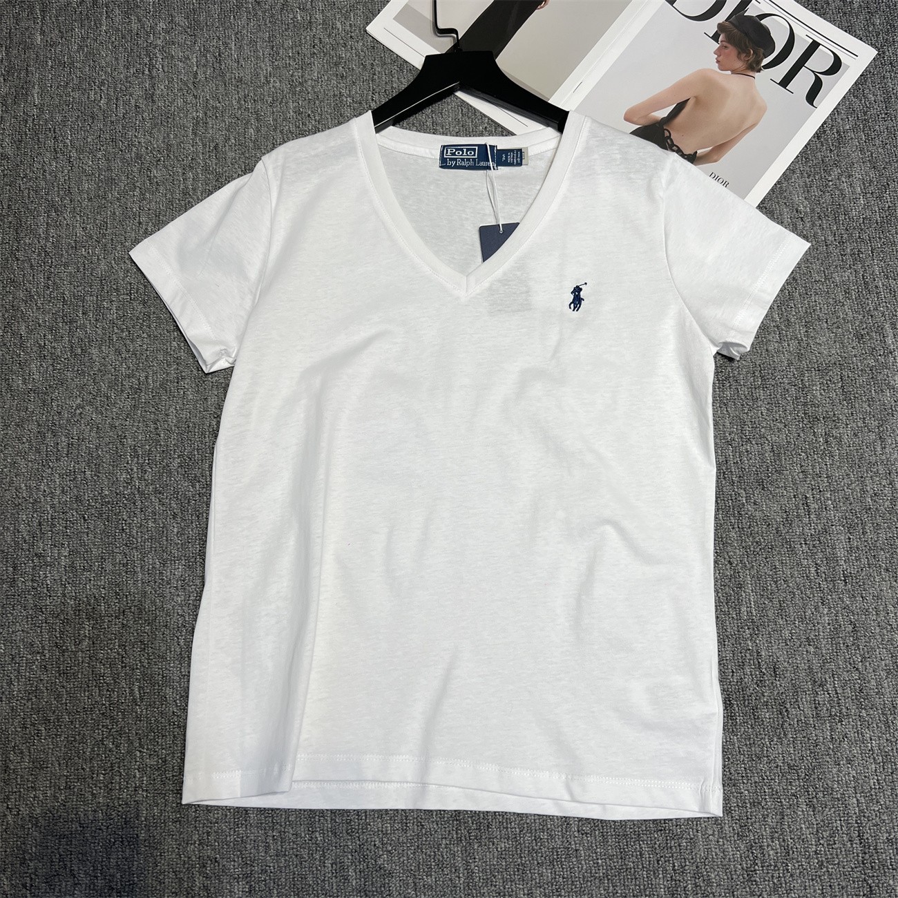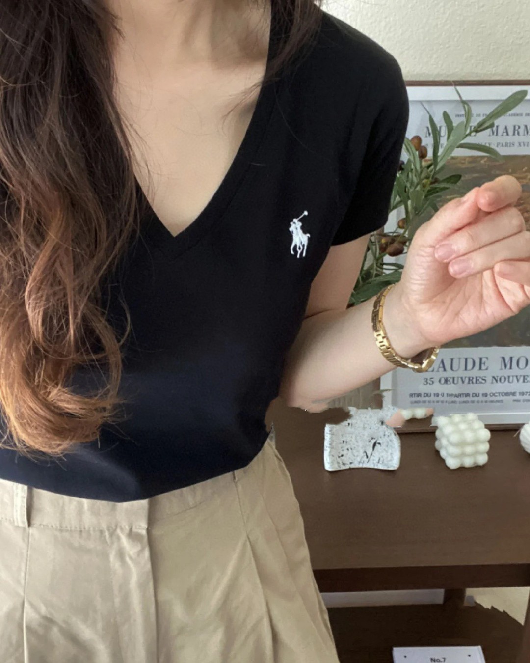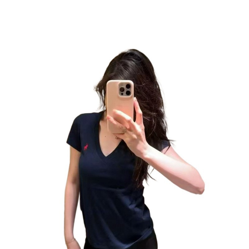 4 색 스윕 코드 ~ RL 조수 브랜드 틈새 라프 여성 클래식 포니 로고 V 넥 심플 패션 조커 티셔츠 세대스토어 가기