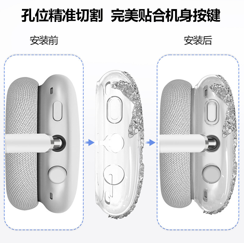 Airpodsmax 보호 커버에 적합 플래시 다이아몬드 스타 모델 Apple max 헤드폰 쉘 투명 APM 보호 커버