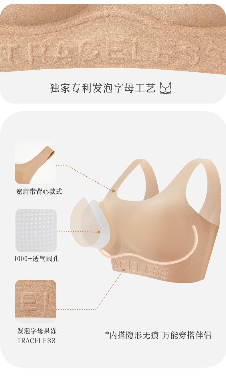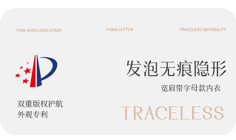 品名: 宽肩带字母发泡无痕隐形双尺码