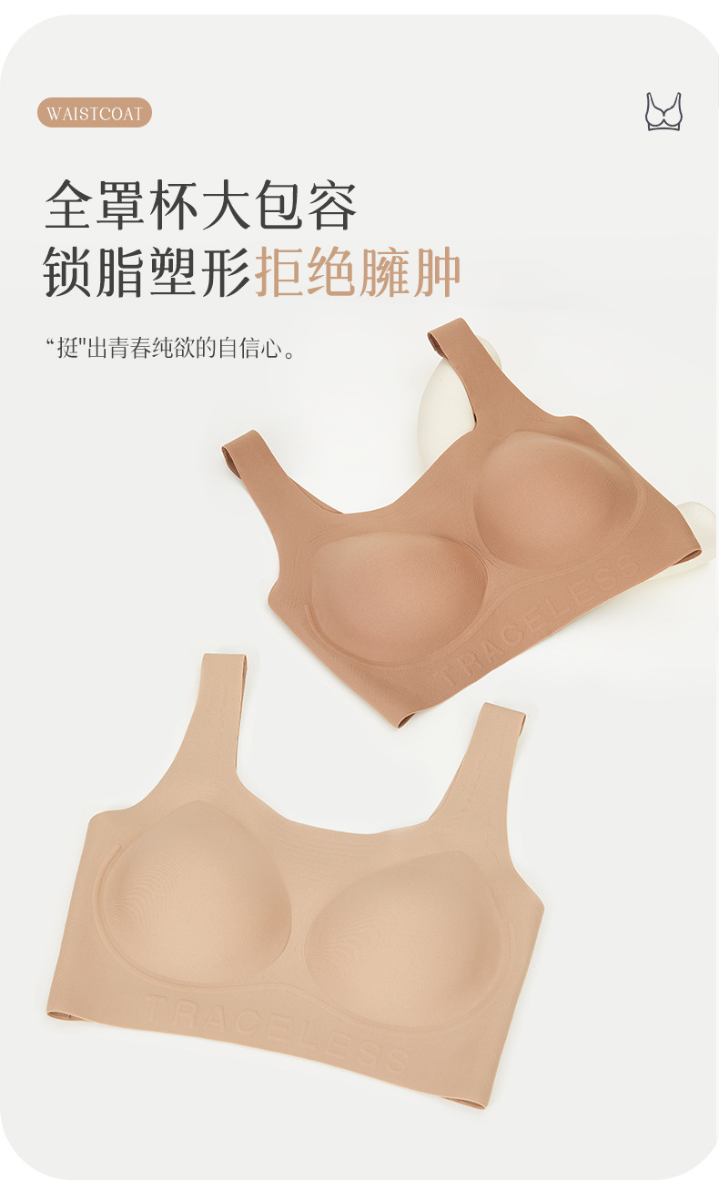 6宽肩带背心款式,后背交叉设计矫阵后背,无痕美背套头款,
