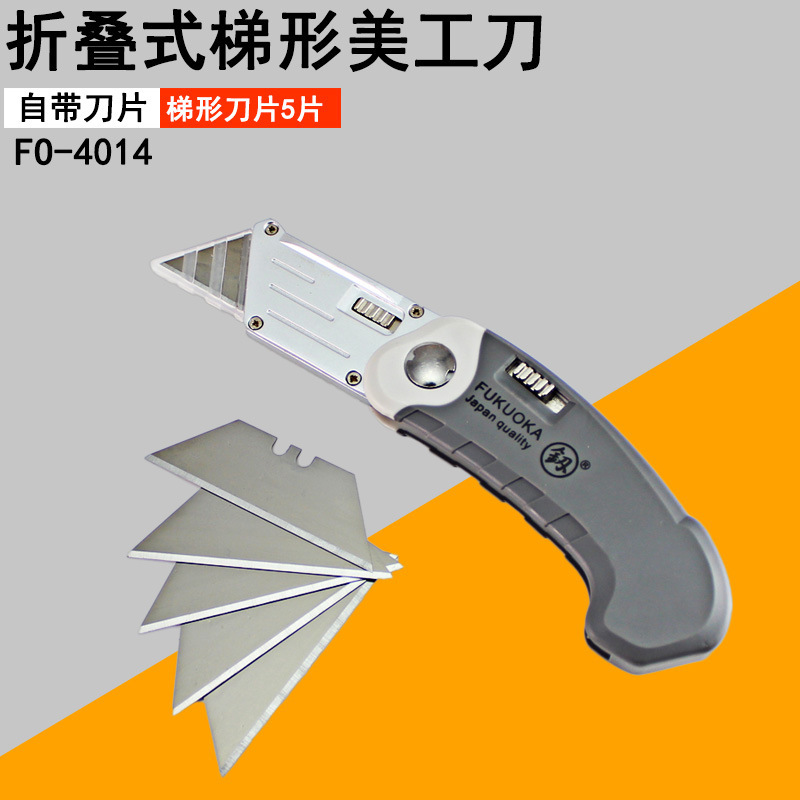 후쿠오카 도구 FO-4014 사다리꼴 유틸리티 나이프 벽지 칼 절단 블레이드 접는 칼 가정용 수동 하드웨어스토어 가기