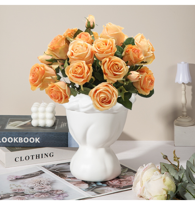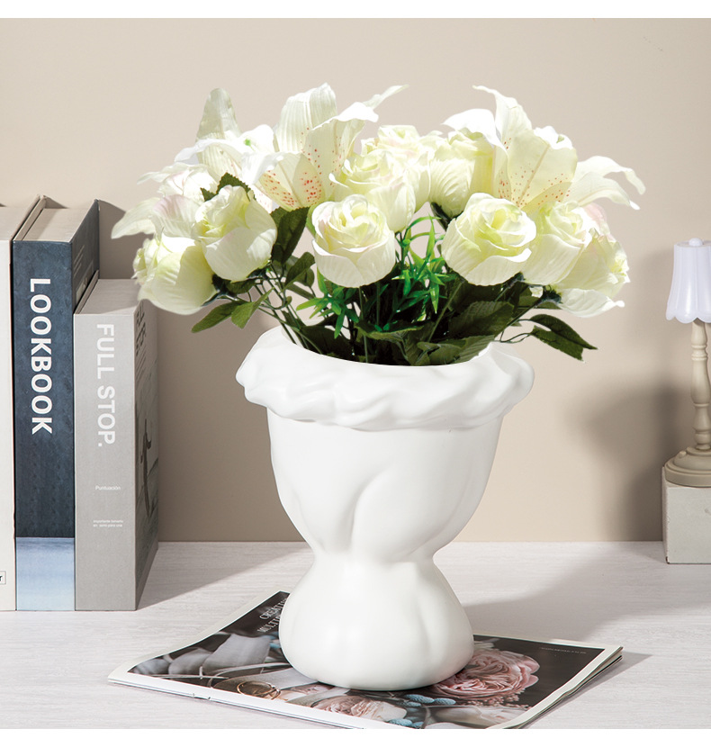 프랑스 크림 스타일 모조 세라믹 플라스틱 꽃병 빛 럭셔리 북유럽 맞춤형 꽃꽂이 수경 장식 장식품 도매