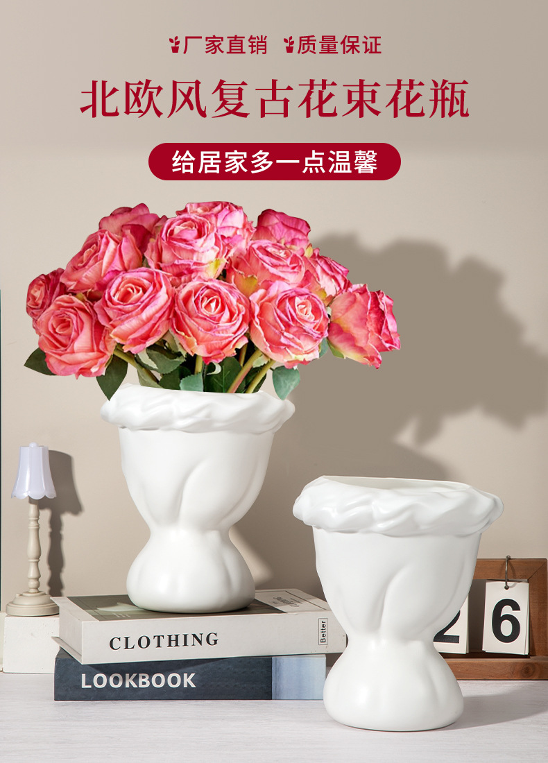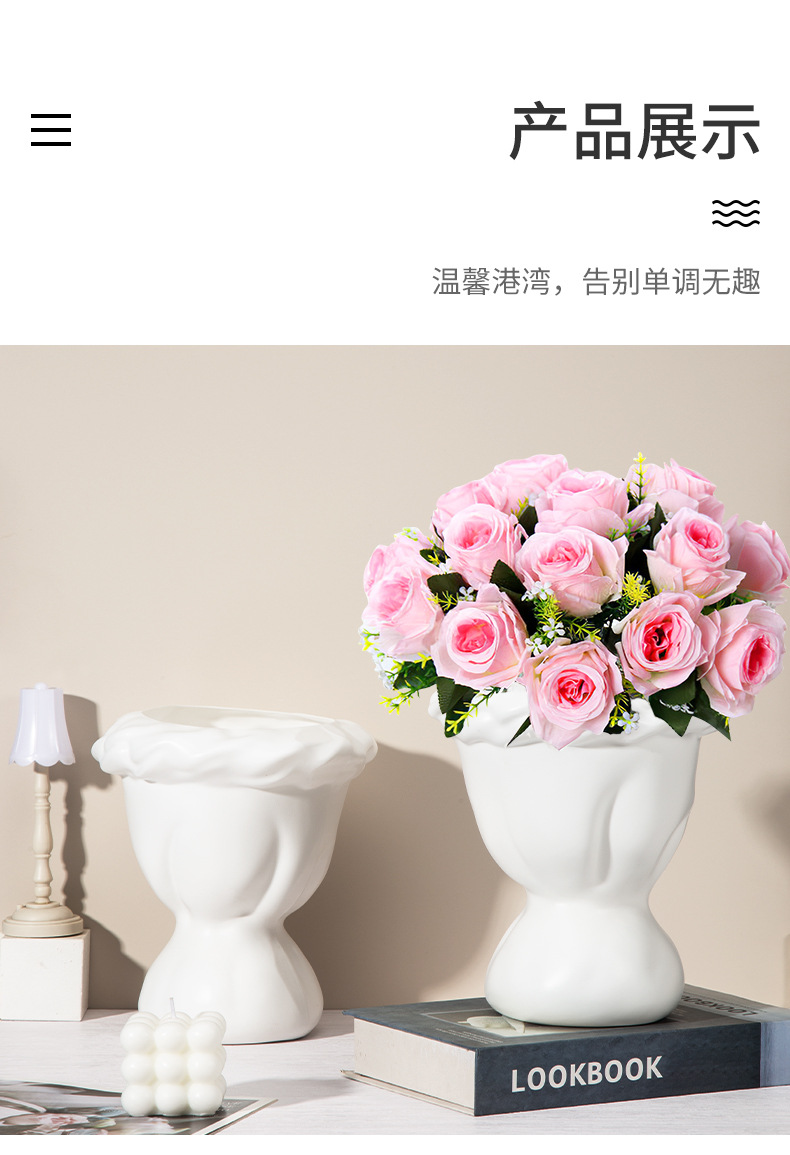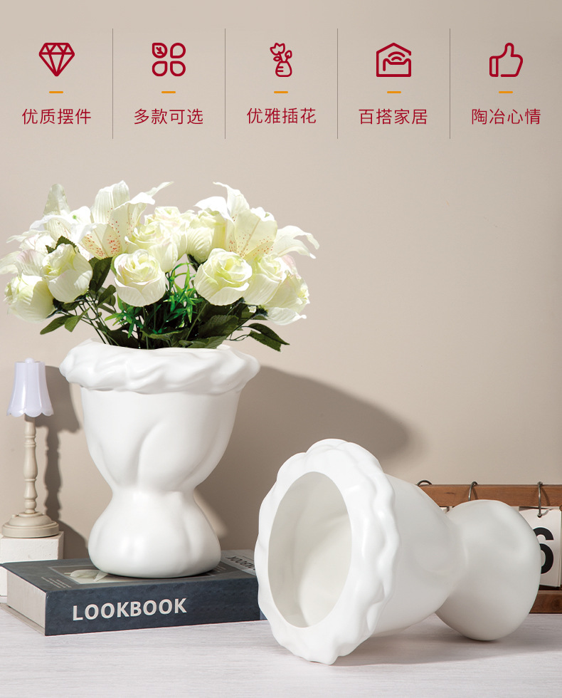 프랑스 크림 스타일 모조 세라믹 플라스틱 꽃병 빛 럭셔리 북유럽 맞춤형 꽃꽂이 수경 장식 장식품 도매스토어 가기