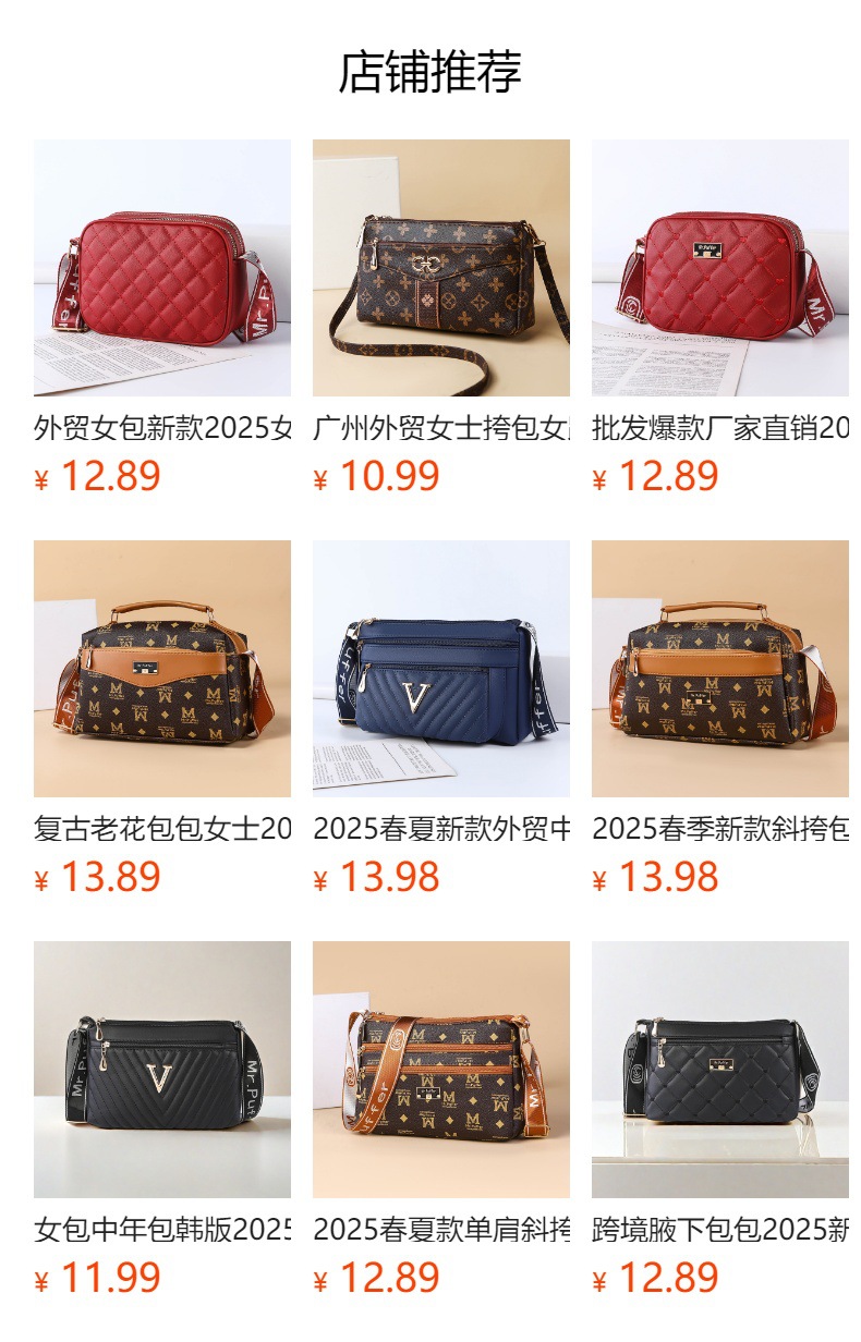 공장 직접 판매 유행 가방2025 새로운 여성 중간 어깨 크로스 바디 가방 대용량 핸드백 대외 무역 배송스토어 가기