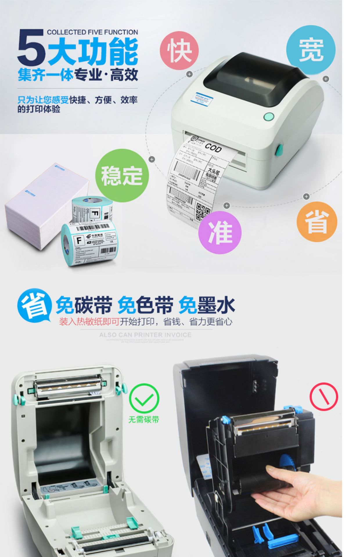 신예 라벨 프린터 XP-470E 점착식 라벨 고화질 300dpi 해외 전자상거래 택배 운송장 프린터