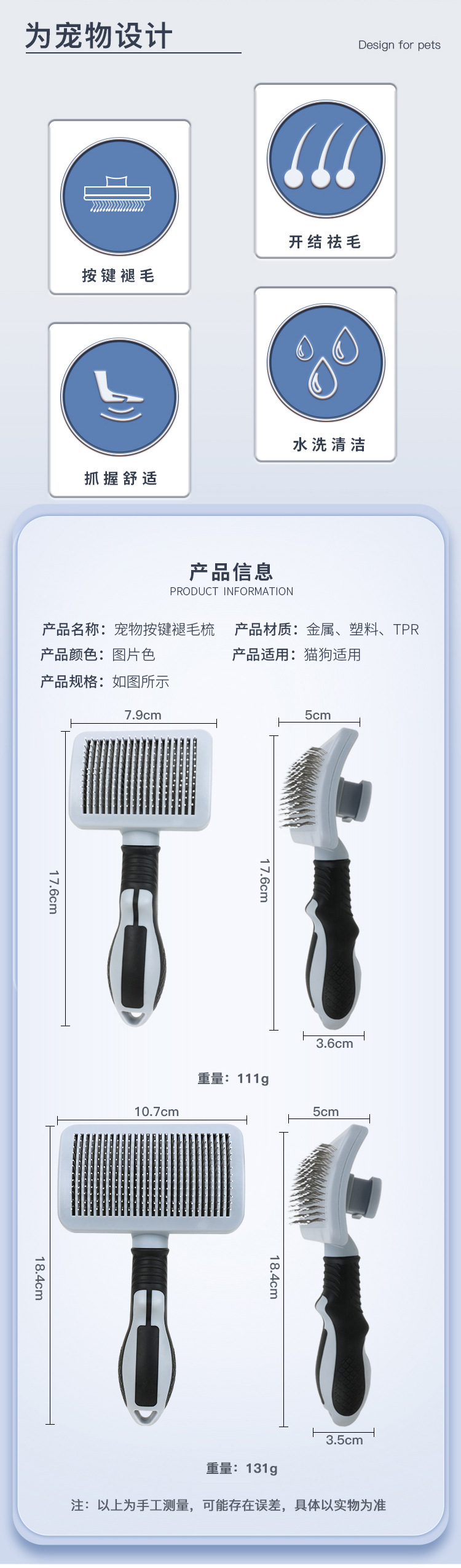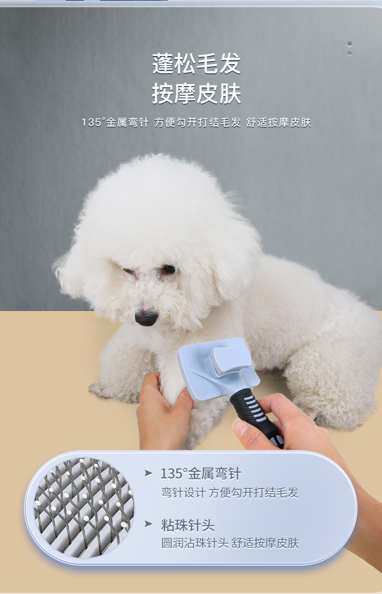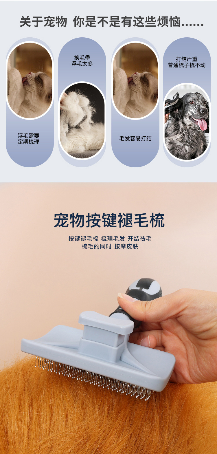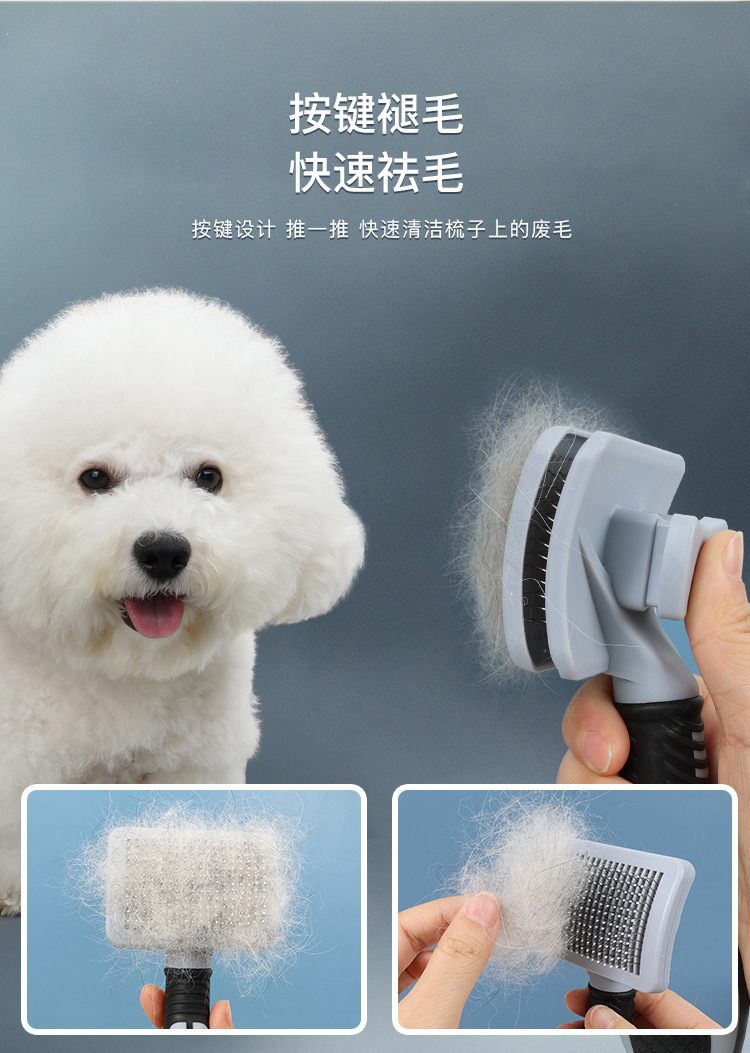 고양이 털 손질 빗, 키 버튼 제모 빗, 개와 고양이 매듭 제거제, 제모 애완동물 용품, 애완동물 바늘 빗