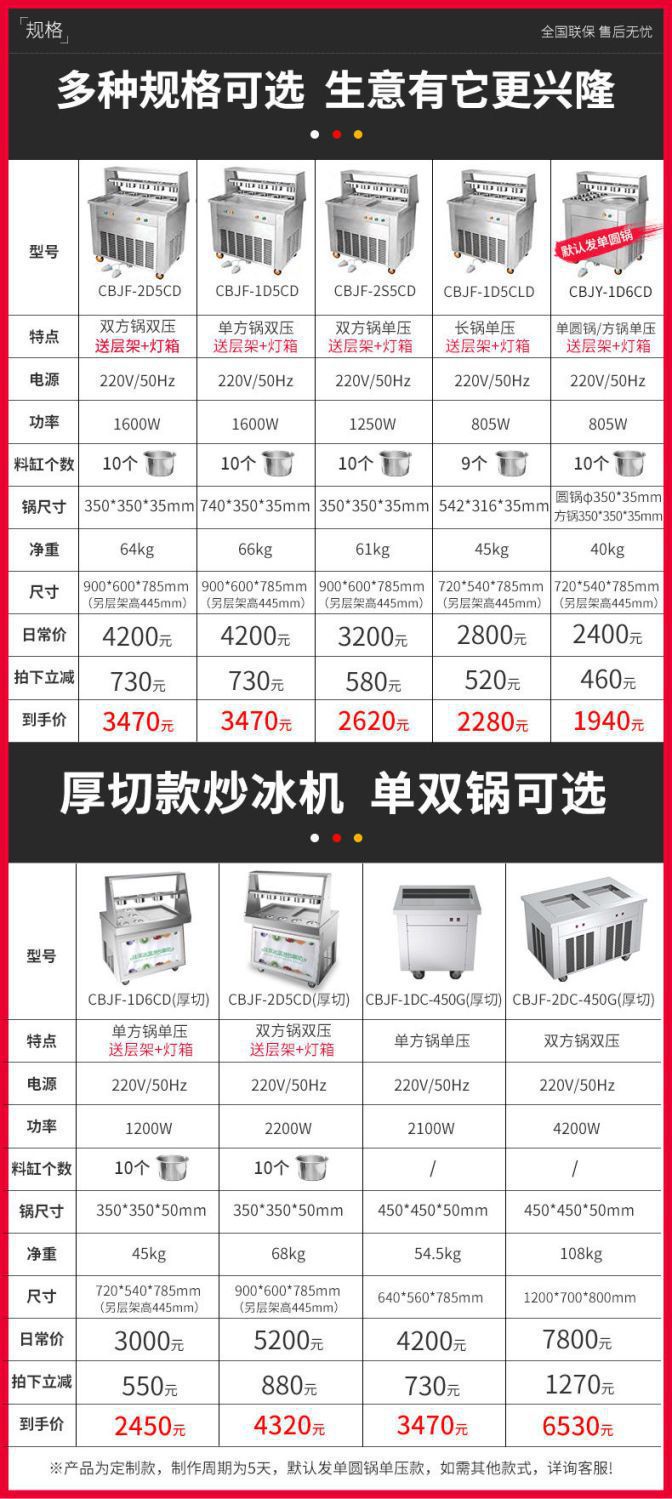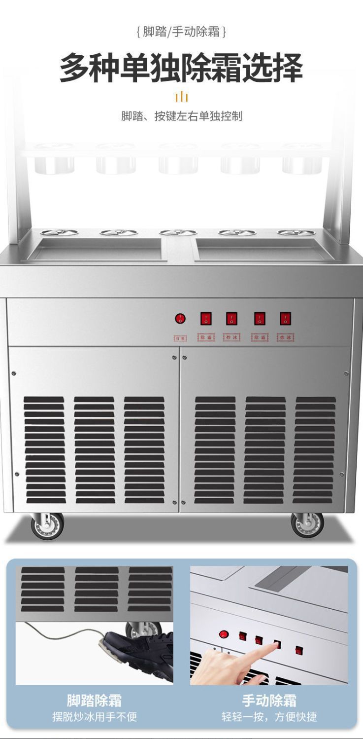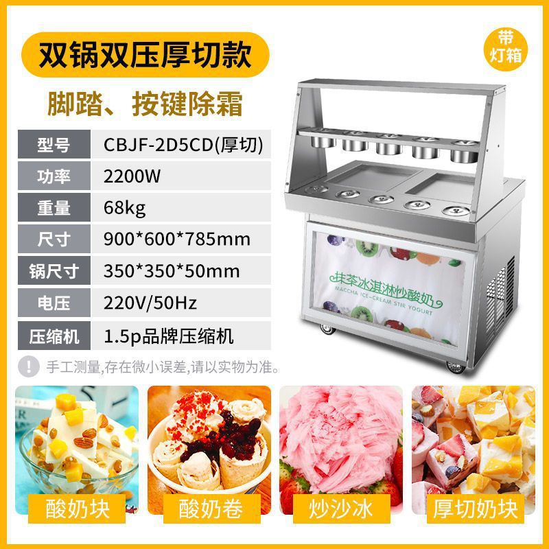맞춤형 튀김 요구르트 기계, 상업용 냉동 자동 튀김 아이스크림 기계, 태국식 이중 냄비 튀김 아이스크림 및 아이스 죽 겸용 노점용 기계