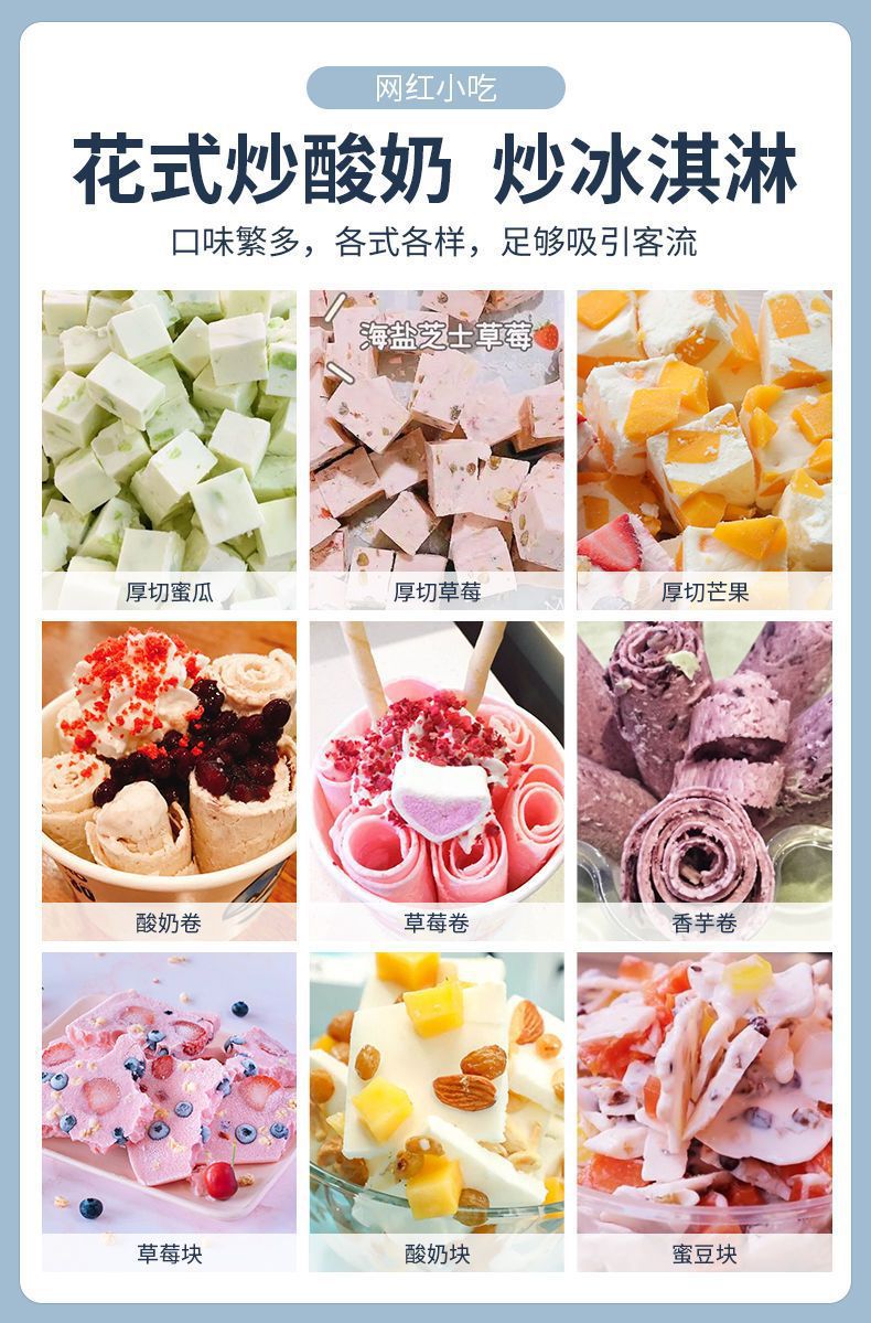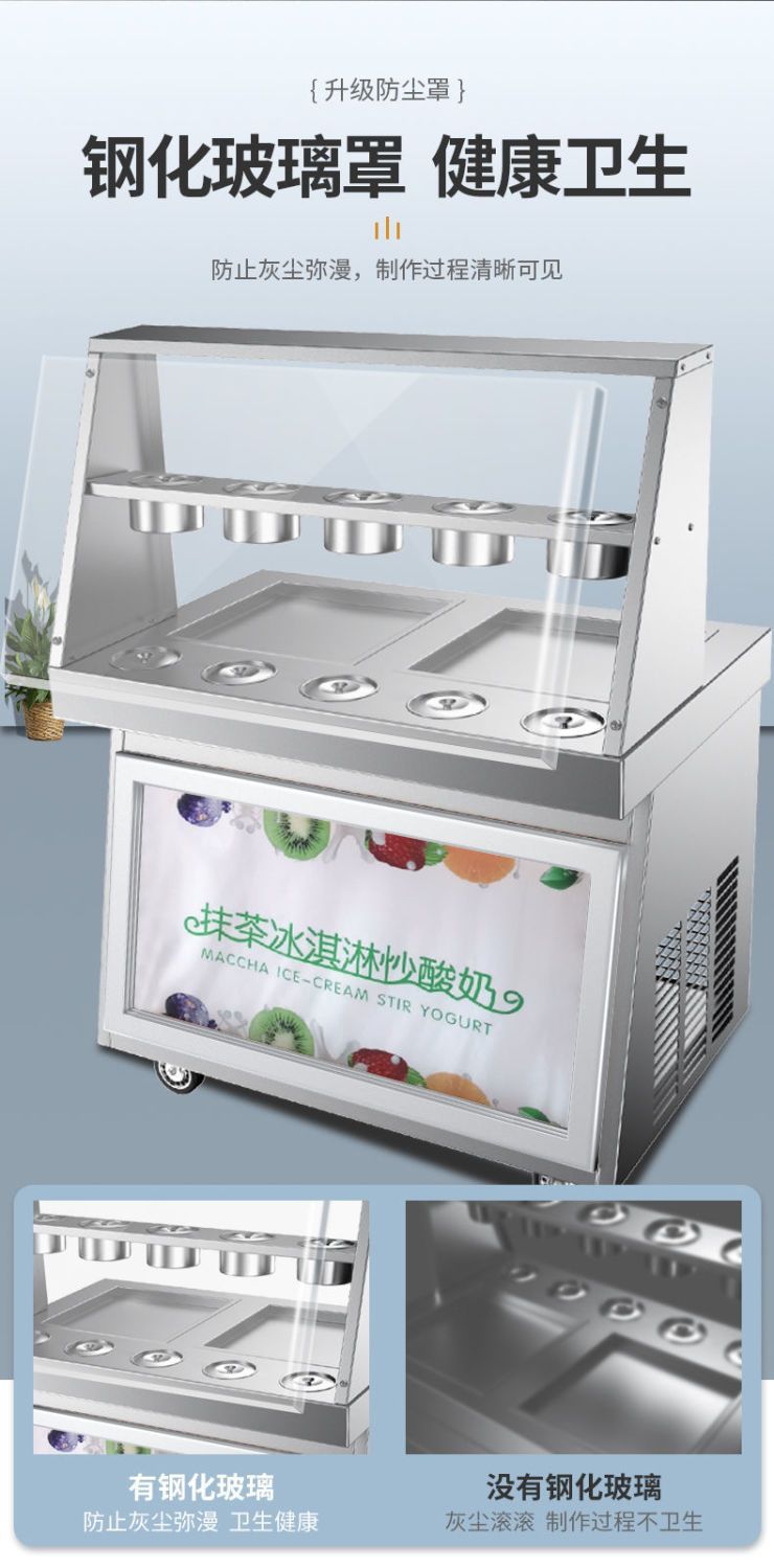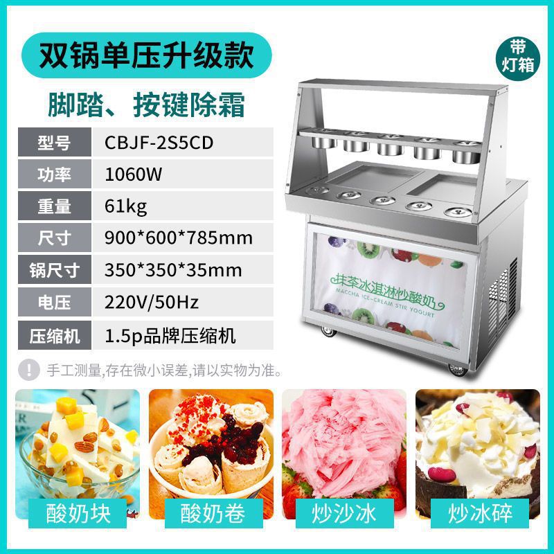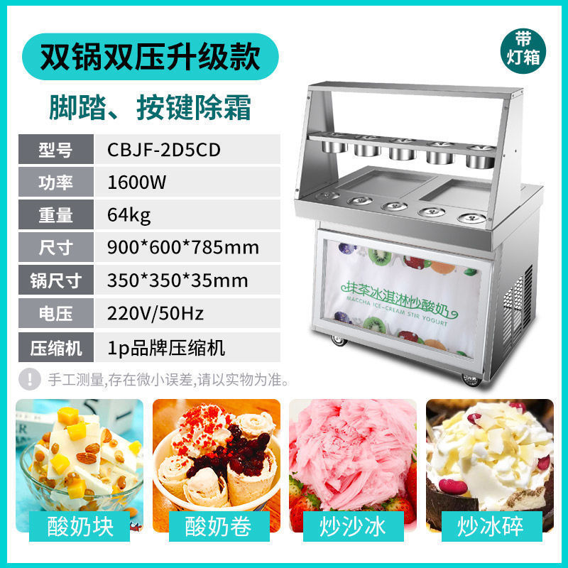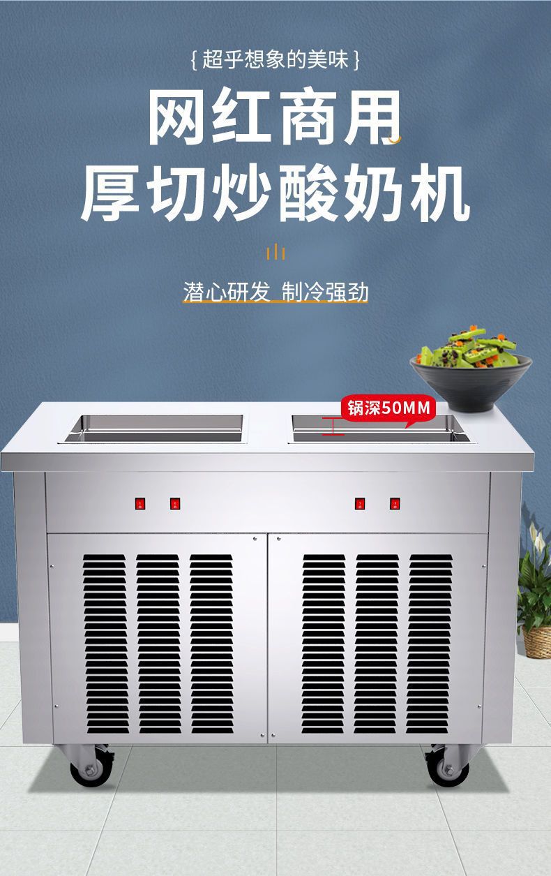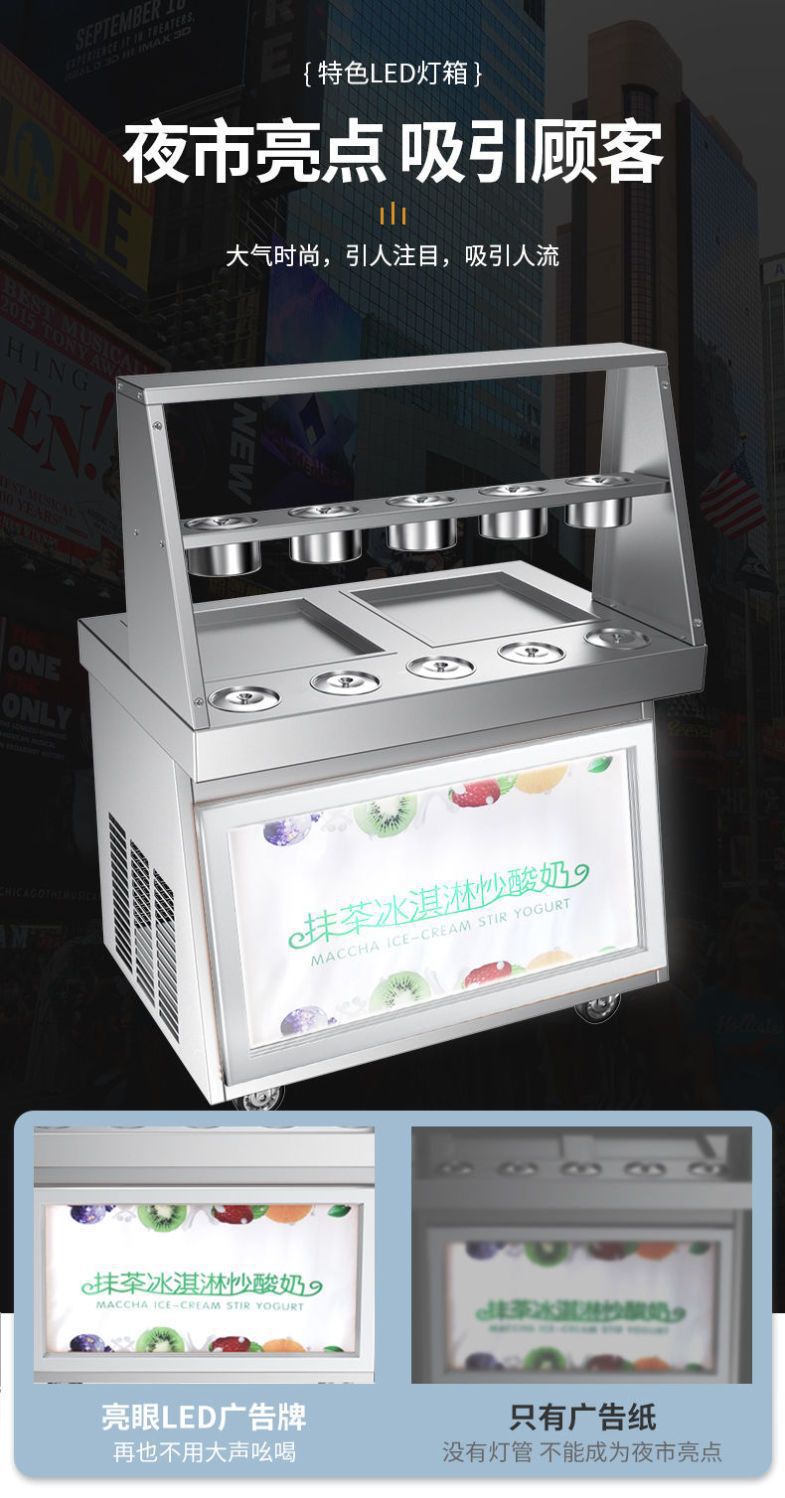 맞춤형 튀김 요구르트 기계, 상업용 냉동 자동 튀김 아이스크림 기계, 태국식 이중 냄비 튀김 아이스크림 및 아이스 죽 겸용 노점용 기계스토어 가기