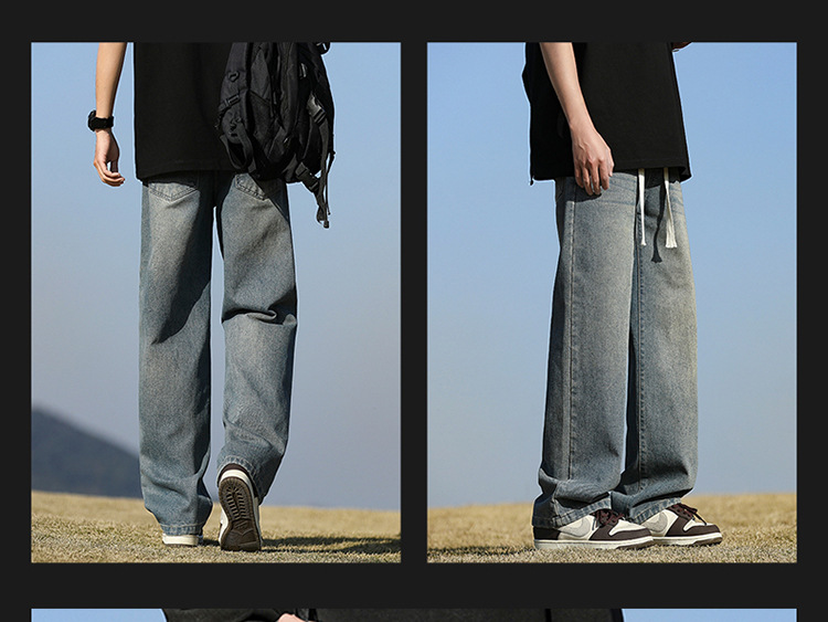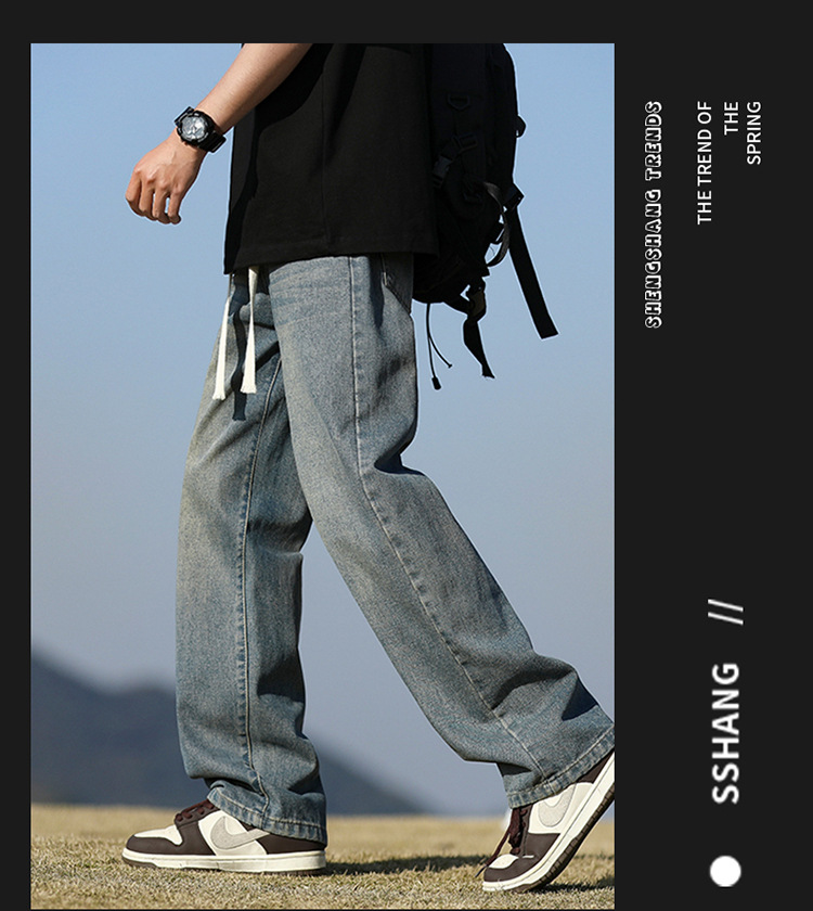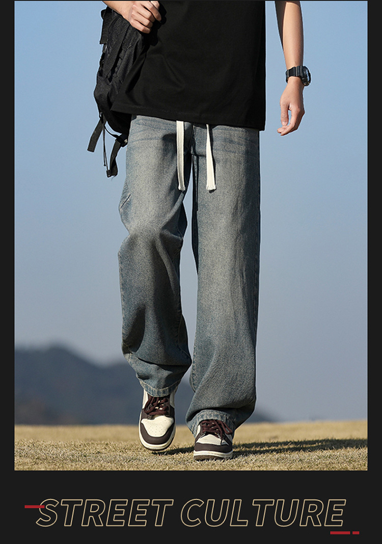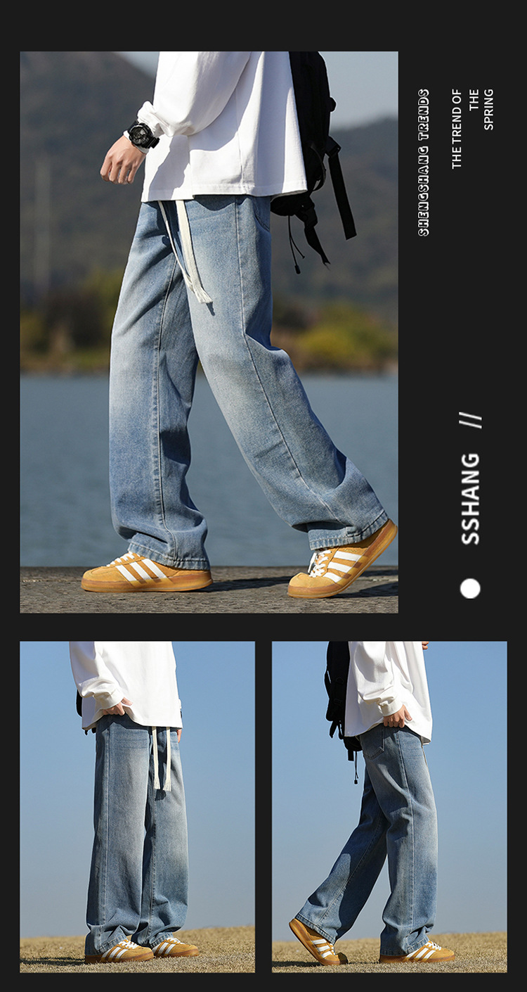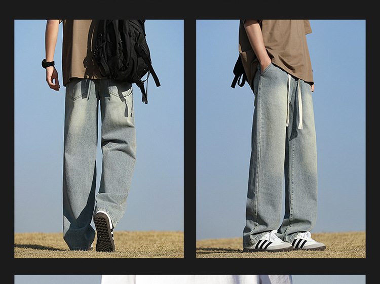 넓은 다리 청바지 남자 2025 년 새로운 봄과 가을 바지 느슨한 오래된 미국 스타일 복고풍 빨래 다리 바지스토어 가기
