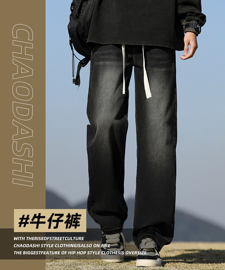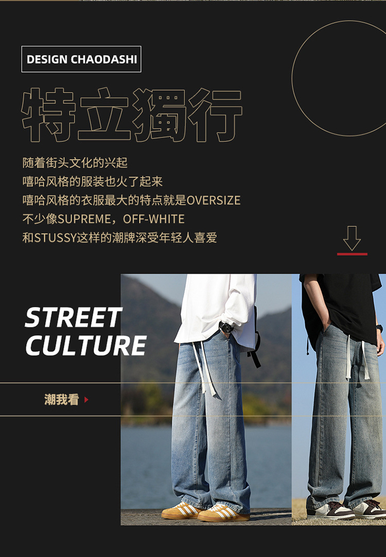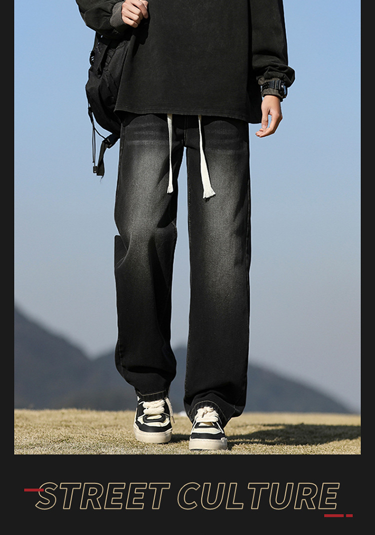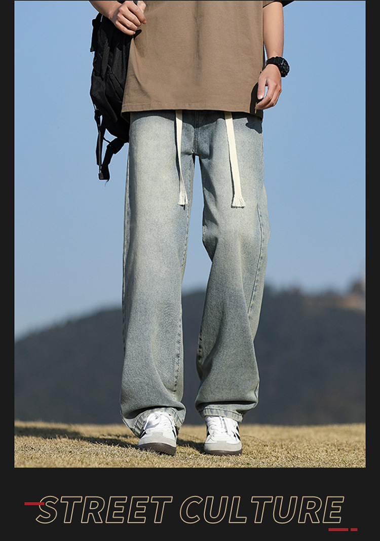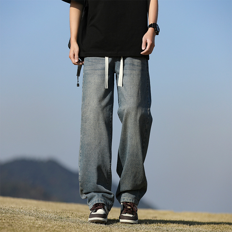 넓은 다리 청바지 남자 2025 년 새로운 봄과 가을 바지 느슨한 오래된 미국 스타일 복고풍 빨래 다리 바지스토어 가기