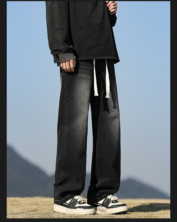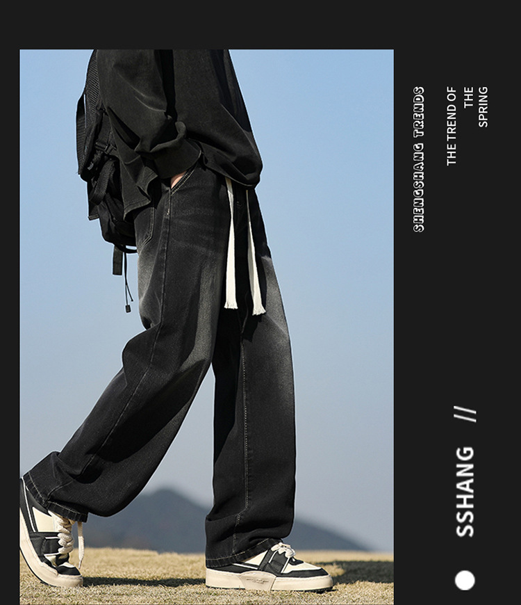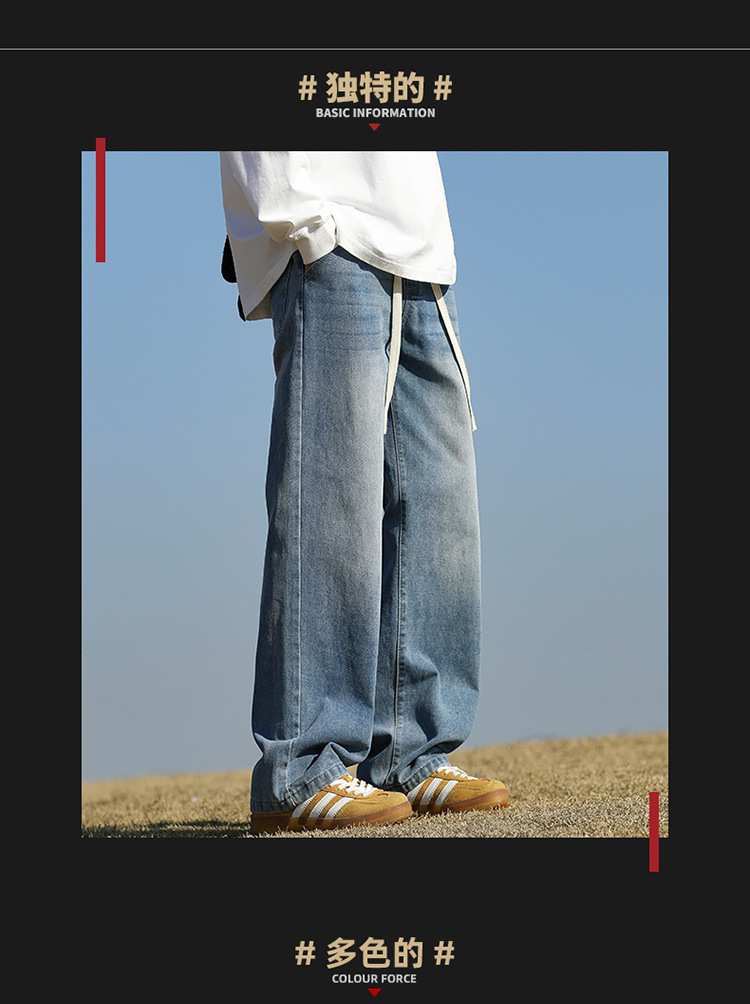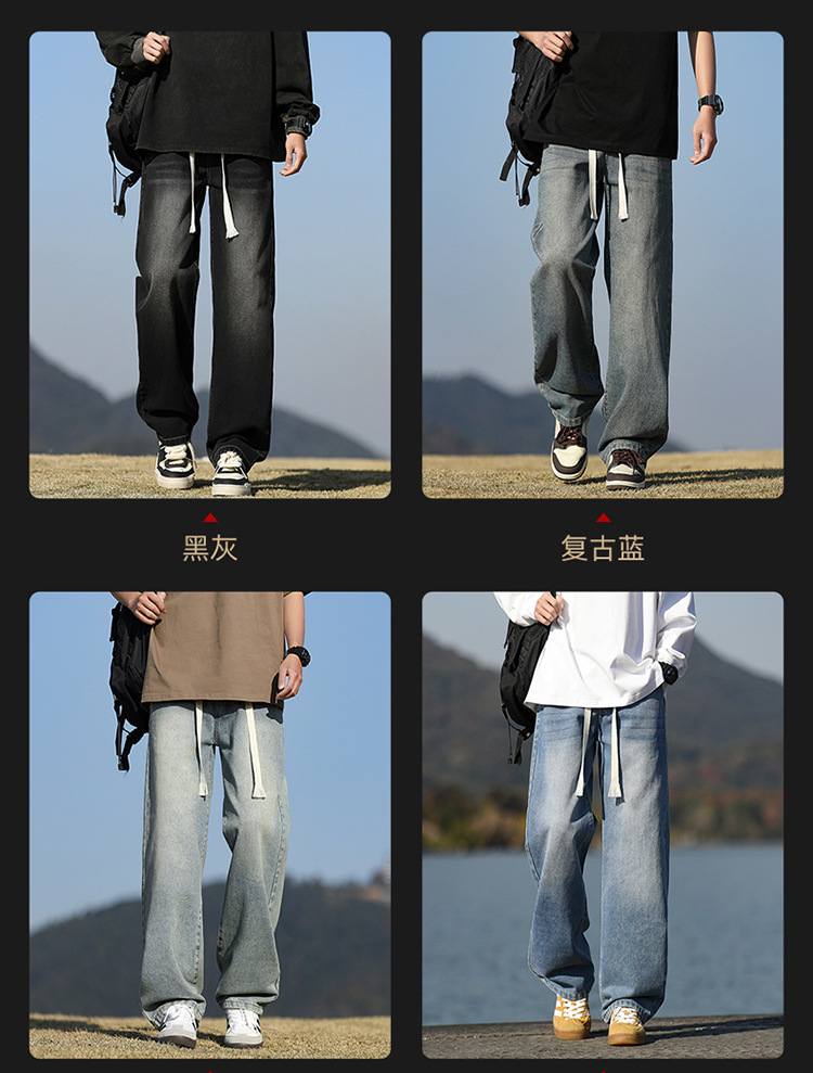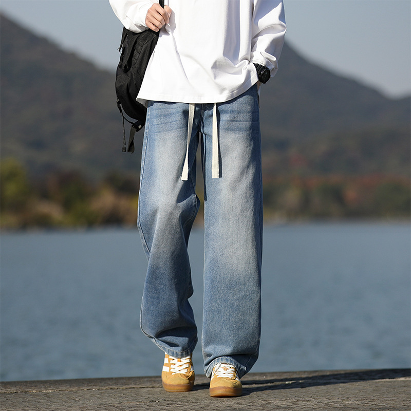 넓은 다리 청바지 남자 2025 년 새로운 봄과 가을 바지 느슨한 오래된 미국 스타일 복고풍 빨래 다리 바지