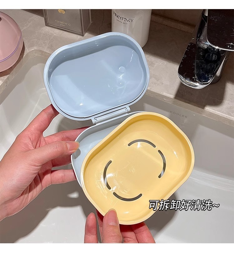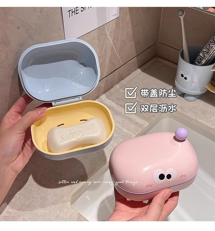 ∝뚜껑이 있는 귀여운 비누 상자 창의적인 이중층 배수 욕실 휴대용 학생 기숙사 홈 욕실 비누스토어 가기