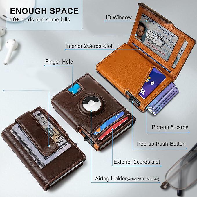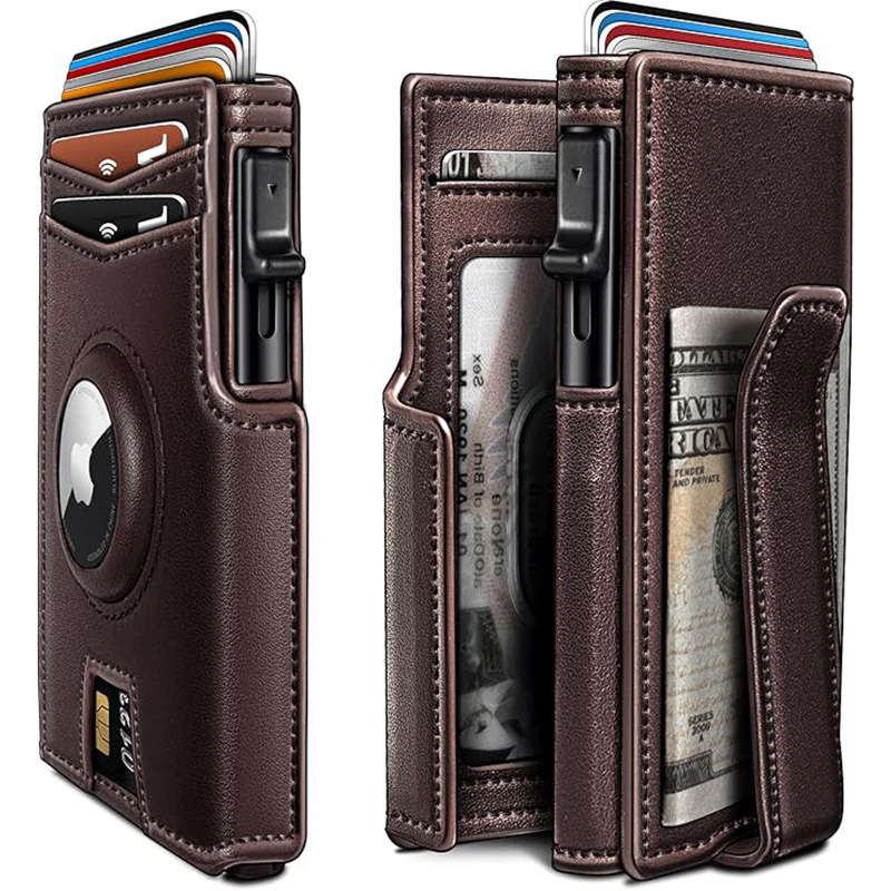 국경 초박형 마그네틱 플립 남성용 지갑 에어태그 색상 대비 울트라 파이버 rfid 도난 방지 대용량 남성용 지갑