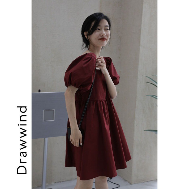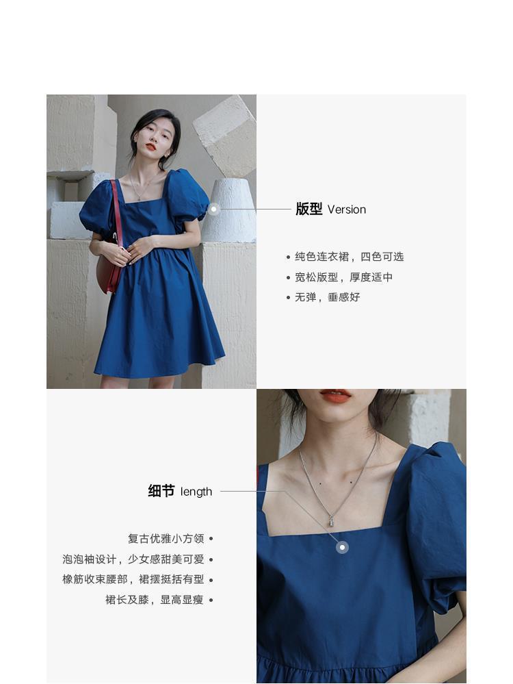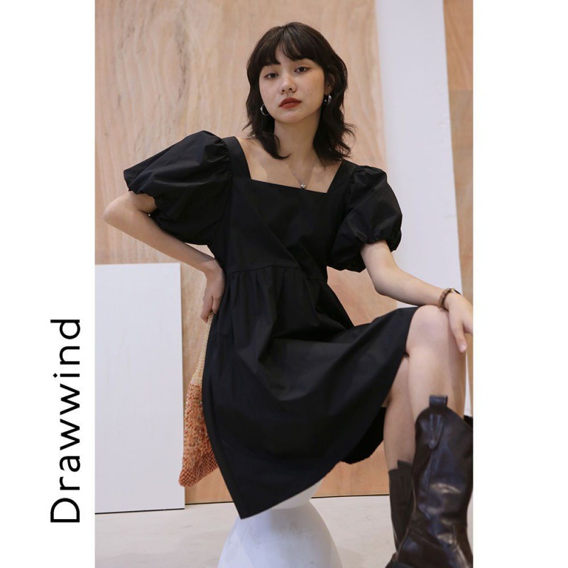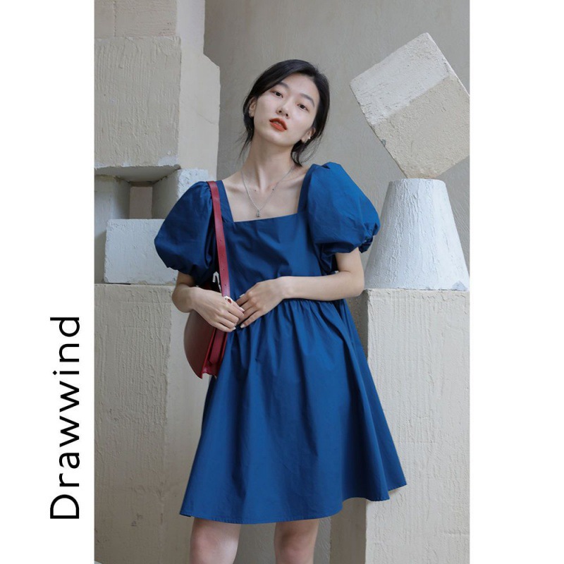 국경 간 프랑스 스타일 원피스 여성 여름 Ins 스타일 새로운 스퀘어 칼라 짧은 소매 느슨한 우아한 짧은 슬림 핏 퍼프 소매스토어 가기