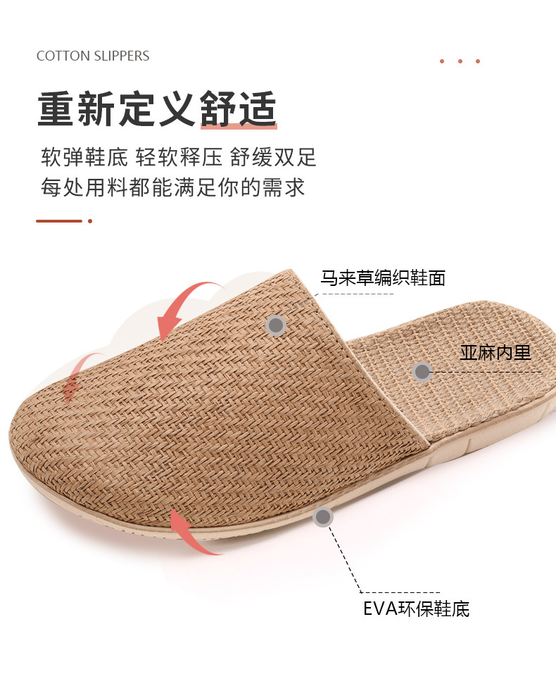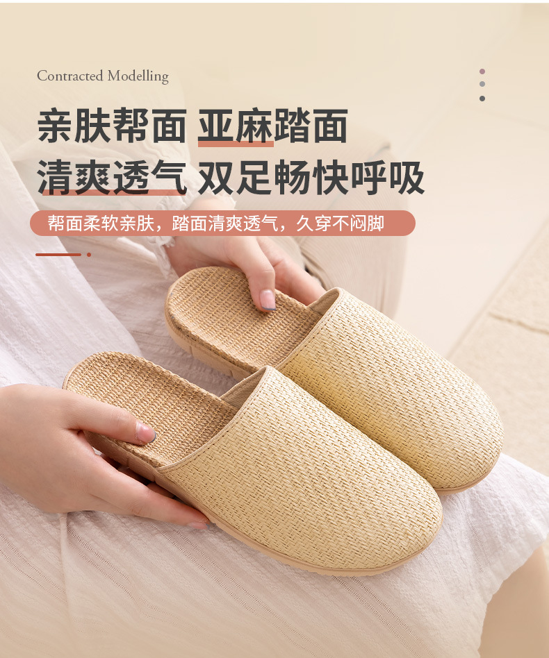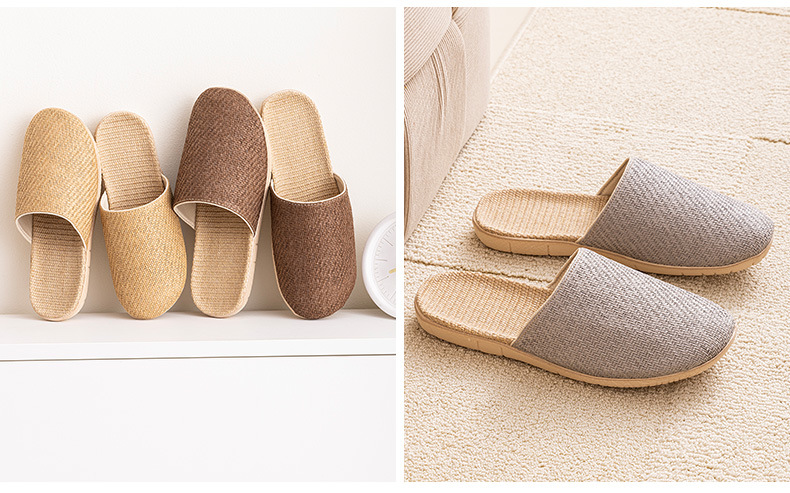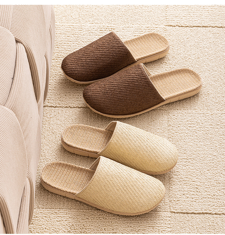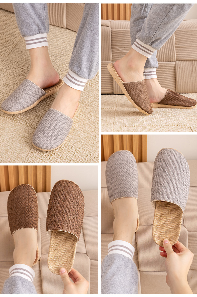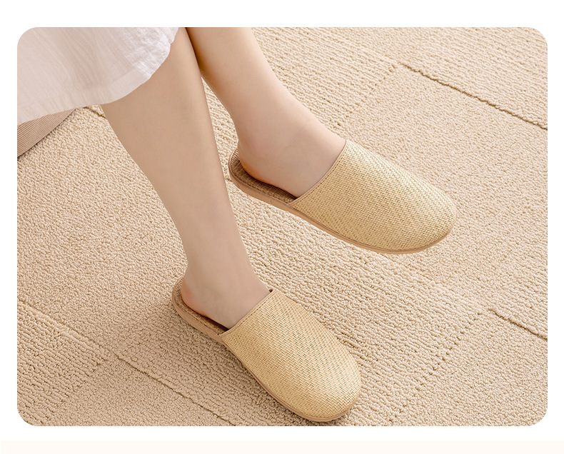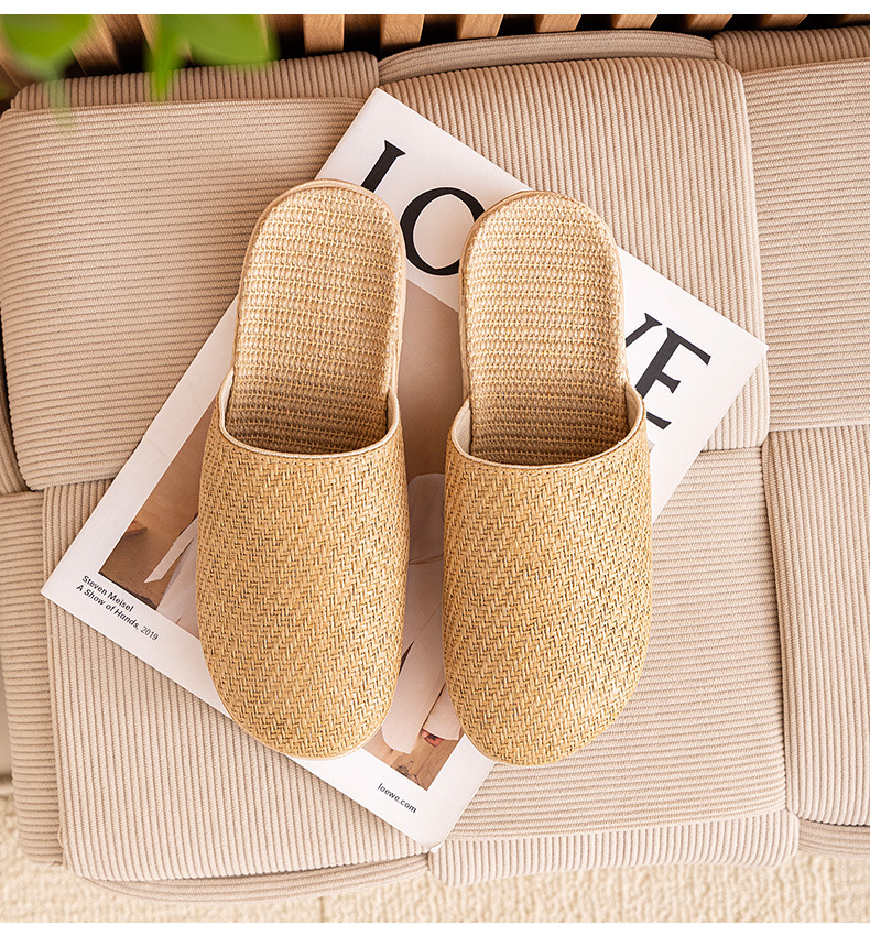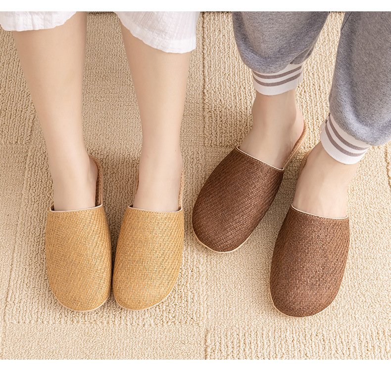 Ya Cao Baotou 여성용 홈 리넨 슬리퍼 간단한 실내 음소거 남성 통기성 홈 4 시즌 일본 스타일 밀짚 젖은 덩굴