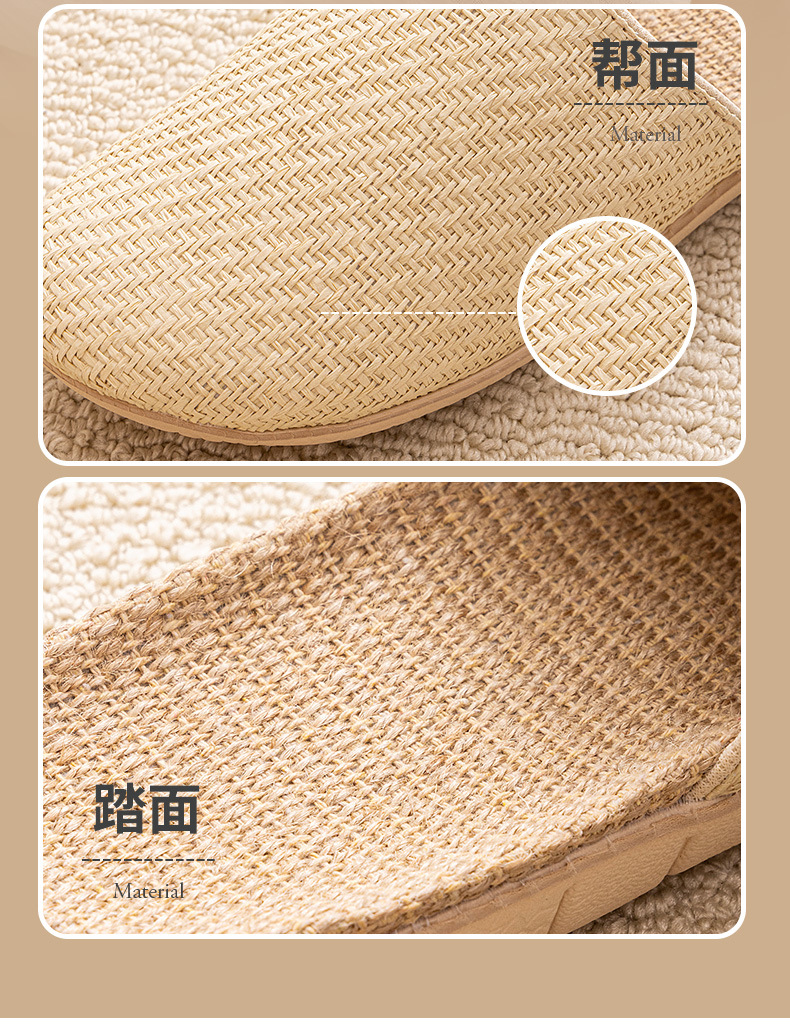 Ya Cao Baotou 여성용 홈 리넨 슬리퍼 간단한 실내 음소거 남성 통기성 홈 4 시즌 일본 스타일 밀짚 젖은 덩굴스토어 가기