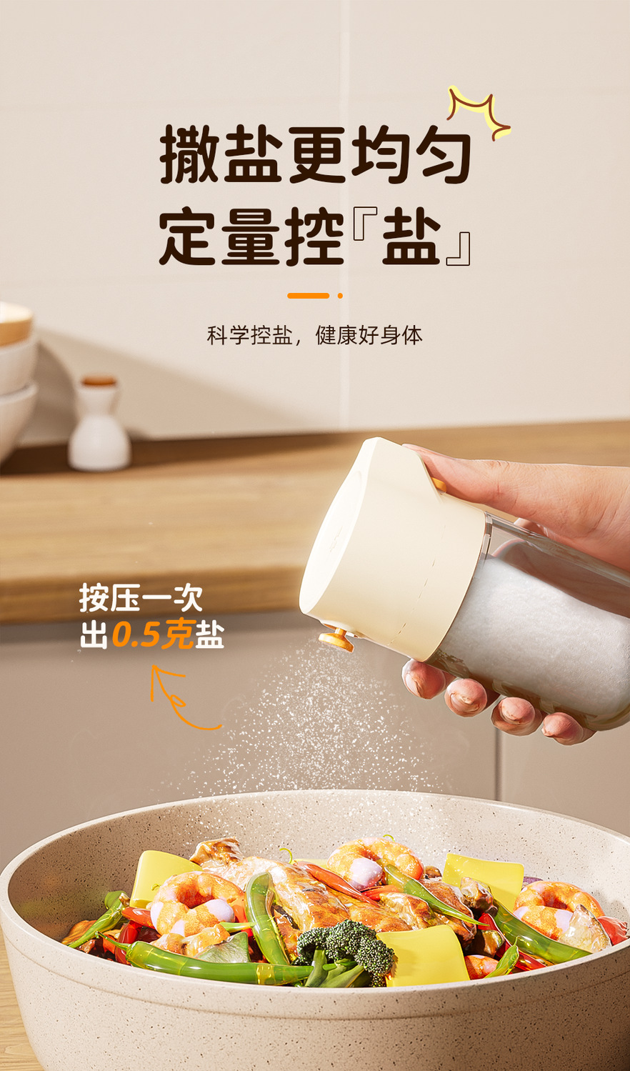 ∝비우 정량 소금통 조미료 상자 유리 주방 조미료 항아리 방습 밀봉 조미료 항아리 조절 가능한 소금병 조미료