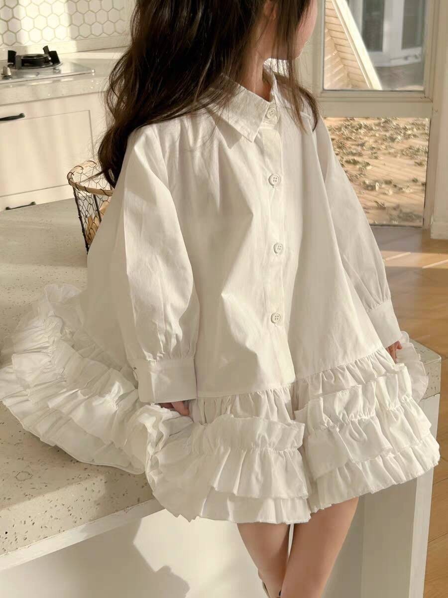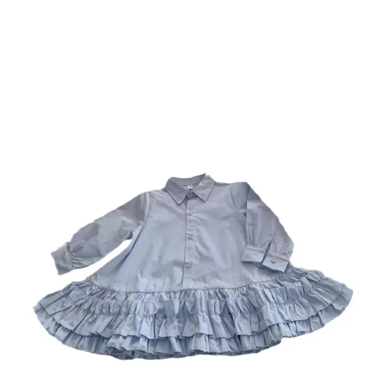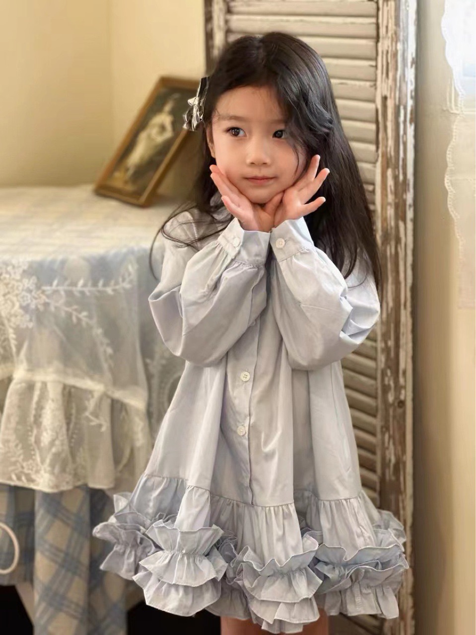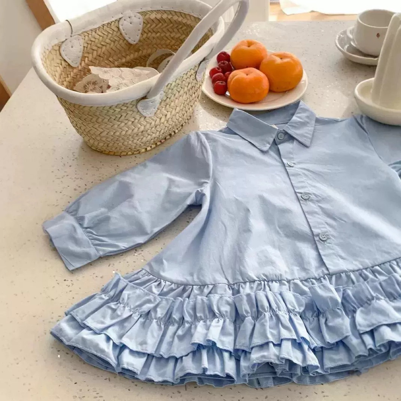 소녀 스커트 긴 소매 셔츠 목걸이 원피스 케이크 스커트 2025 봄과 가을 새로운 대외 무역 원피스 3-8 년