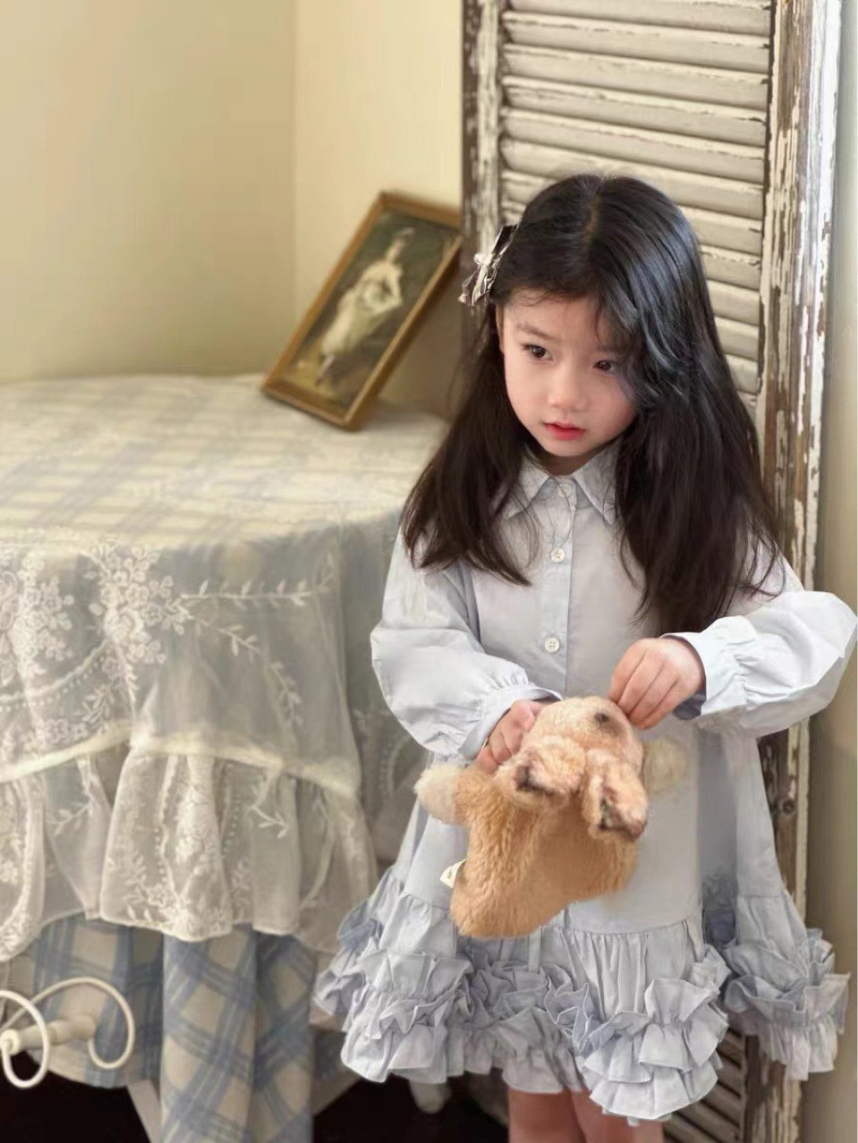소녀 스커트 긴 소매 셔츠 목걸이 원피스 케이크 스커트 2025 봄과 가을 새로운 대외 무역 원피스 3-8 년스토어 가기