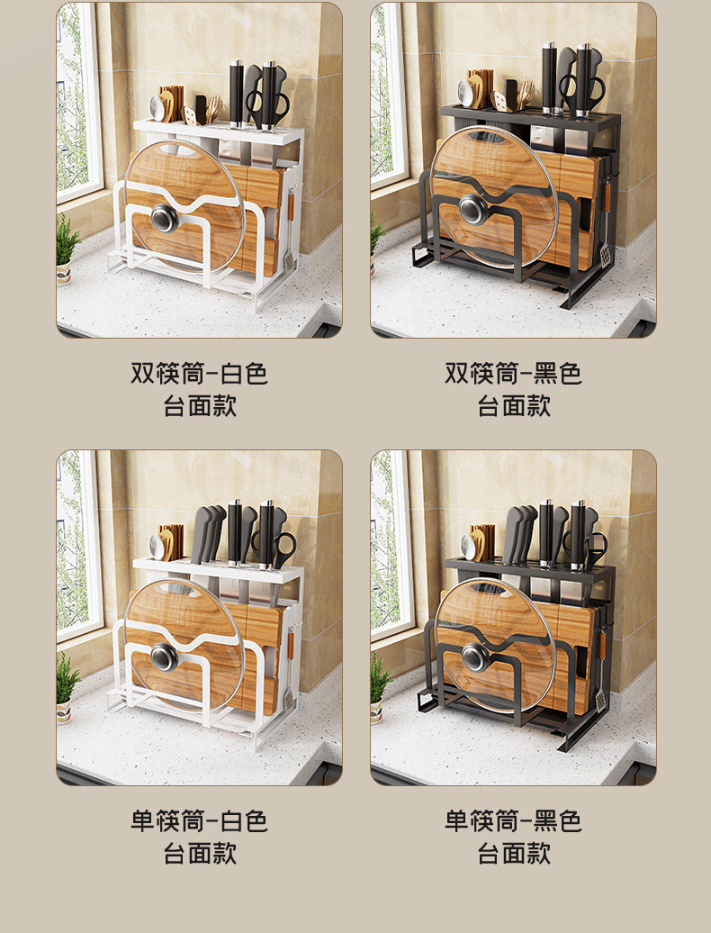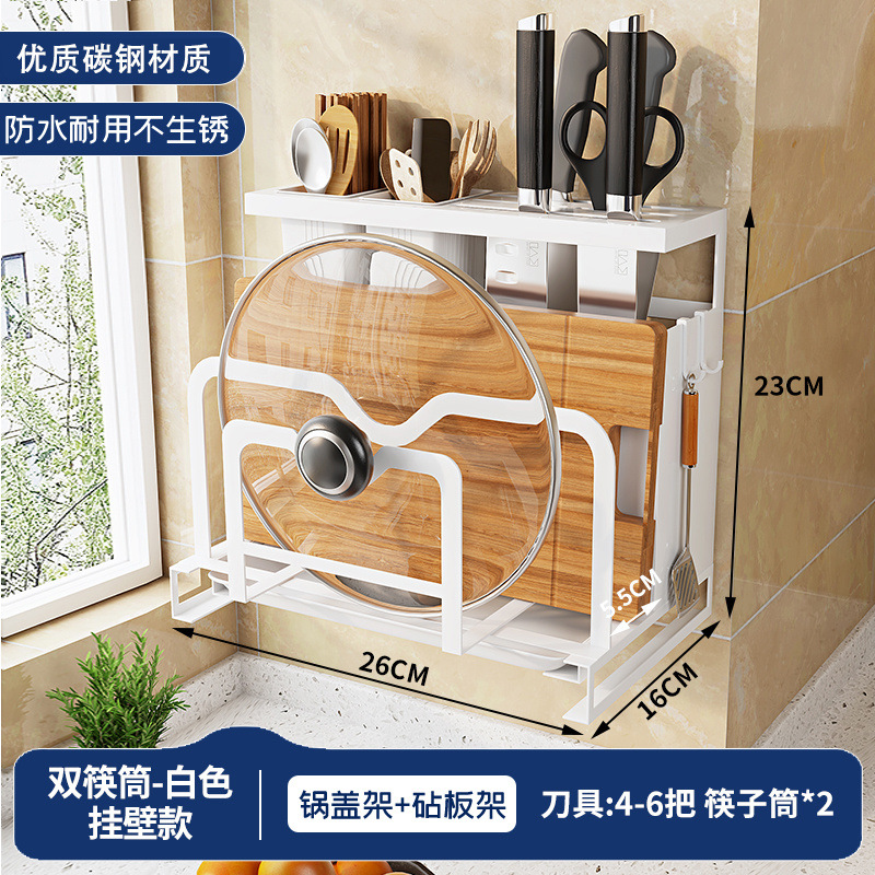 • 화이트 모델 [공식 정품 수출 품질] 두꺼워짐 - [벽걸이 모델] 이중 젓가락 꽂이 + 도마 꽂이 + 냄비 뚜껑 꽂이