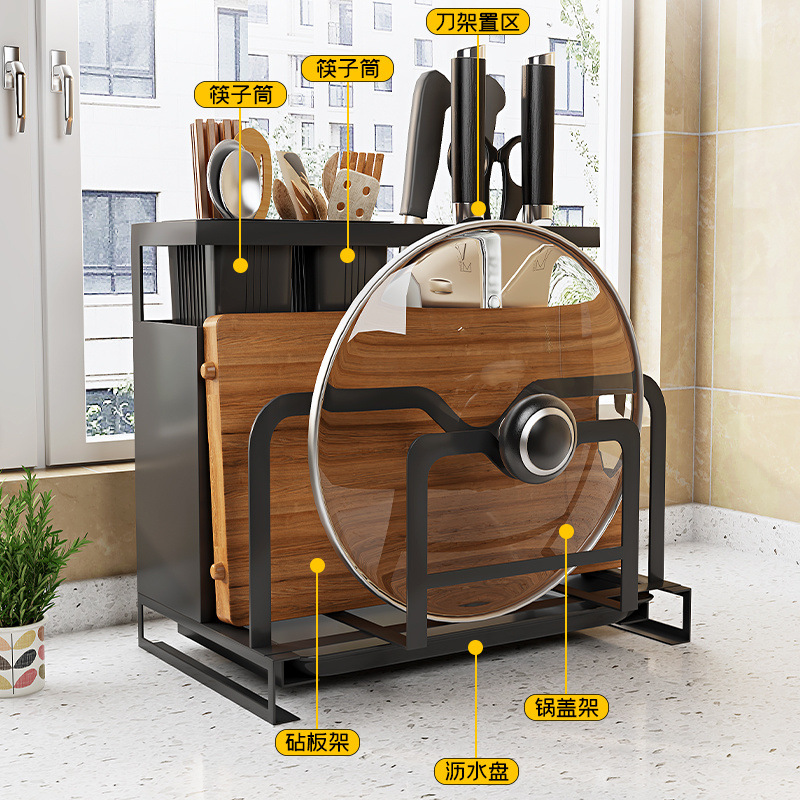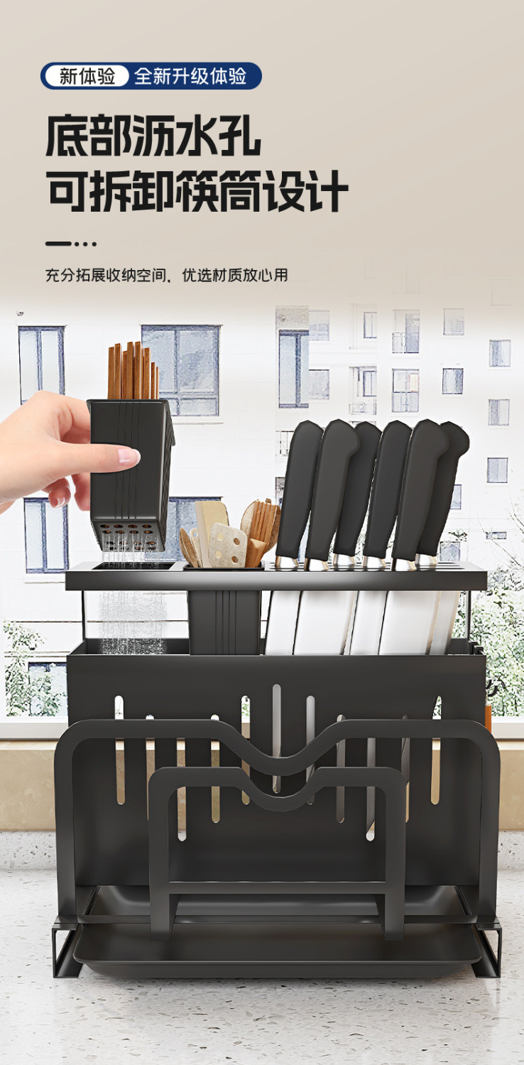 • 블랙모델 [공식정품수출품질] 두꺼워짐 - [조리대모델] 이중젓가락통 + 도마걸이 + 냄비뚜껑걸이
