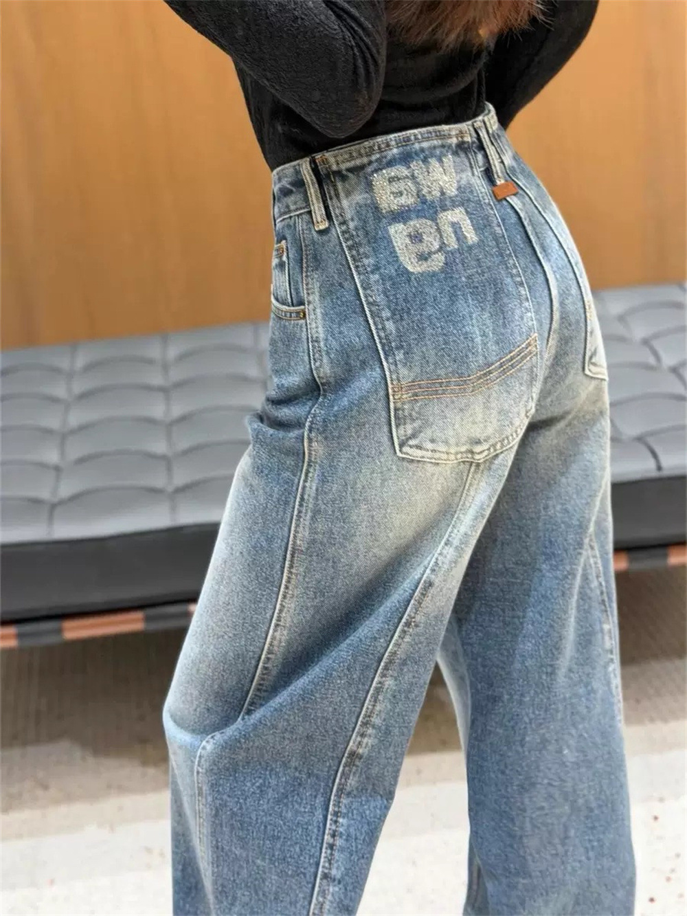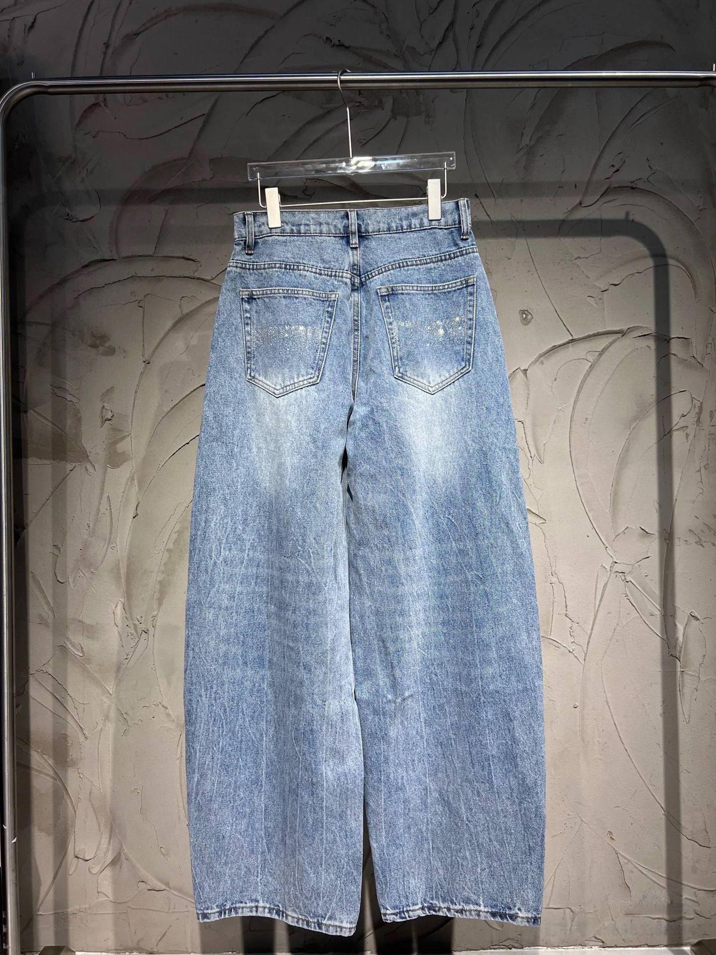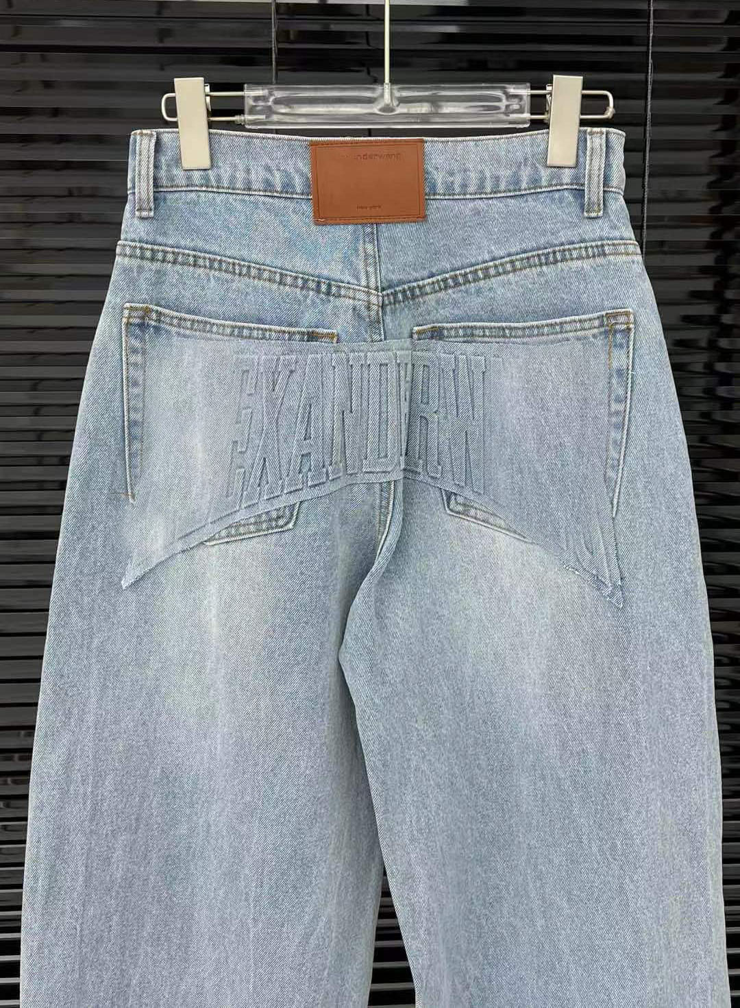 Nanyou 도매 왕 가족 25 봄과 여름 새로운 라이트 블루 청바지 엉덩이 3D 입체 문자 machete 바지 여성스토어 가기