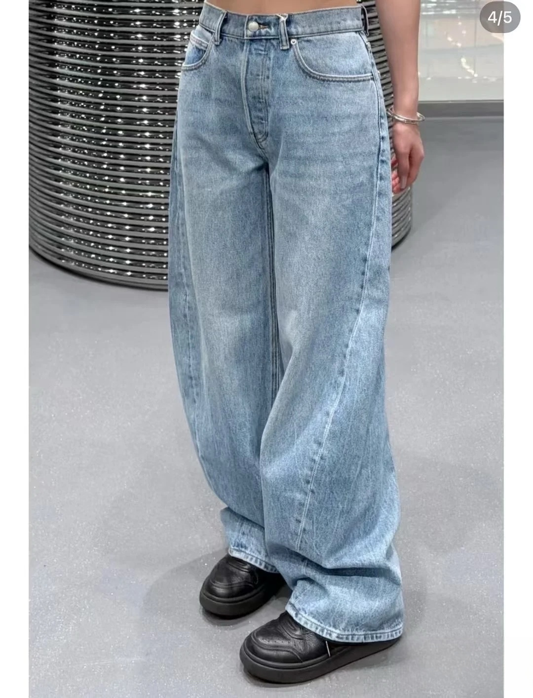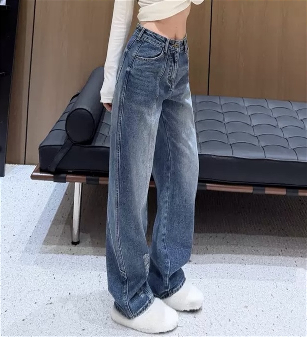 Nanyou 도매 왕 가족 25 봄과 여름 새로운 라이트 블루 청바지 엉덩이 3D 입체 문자 machete 바지 여성