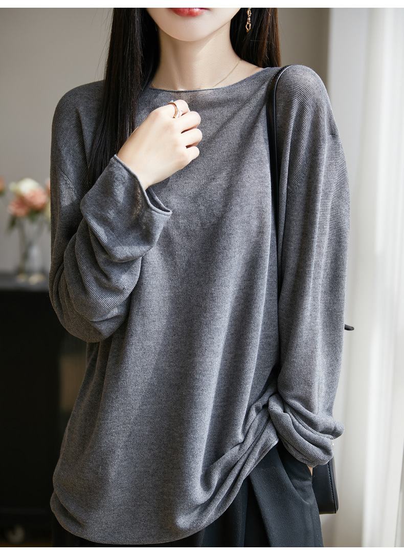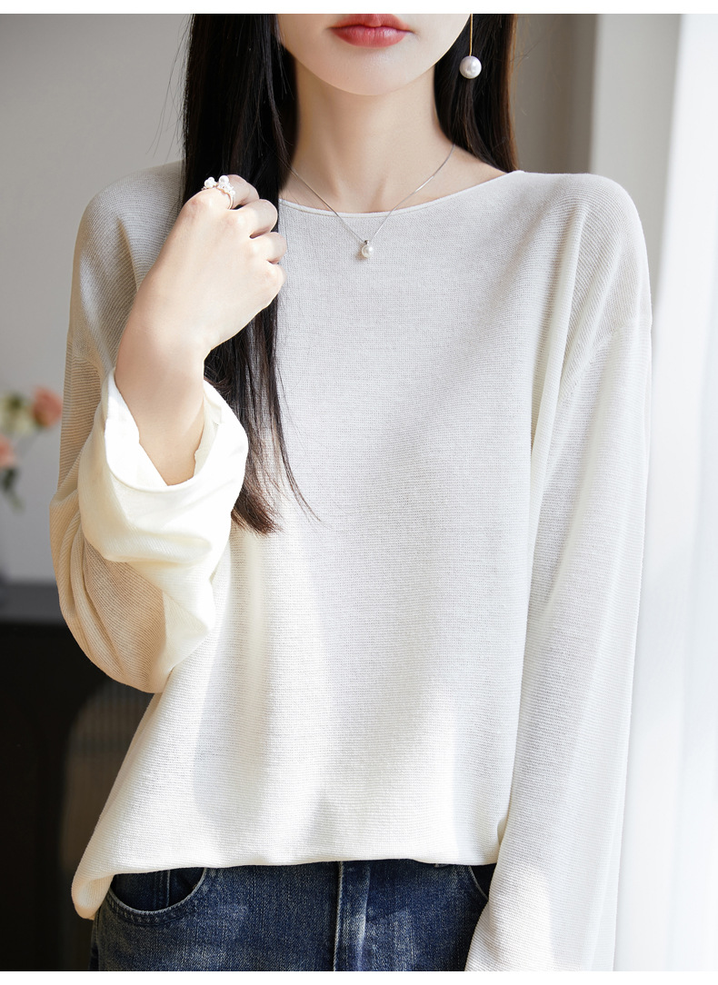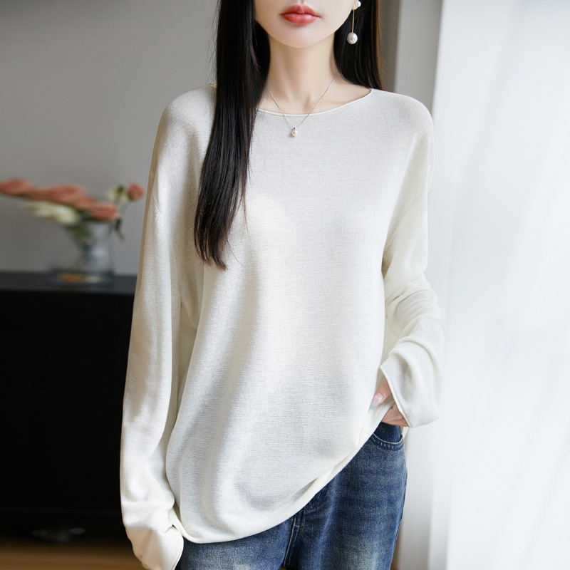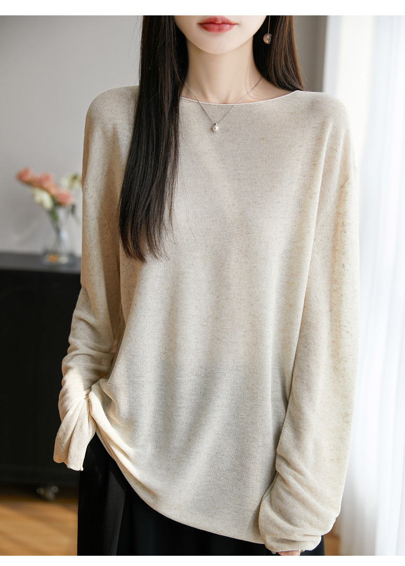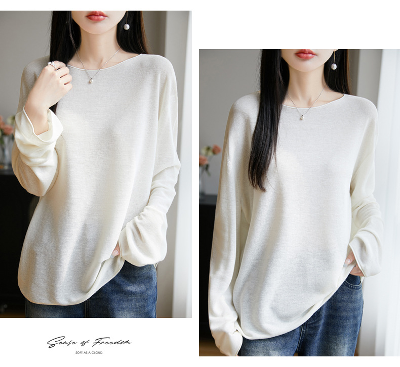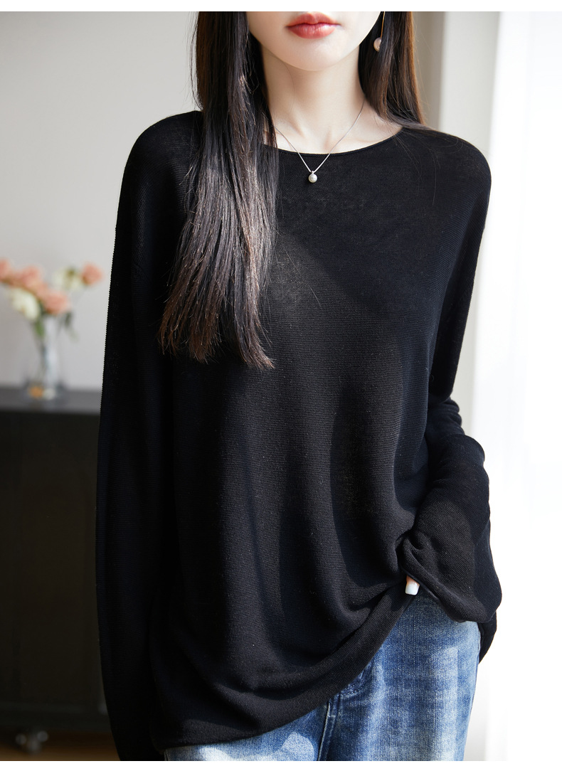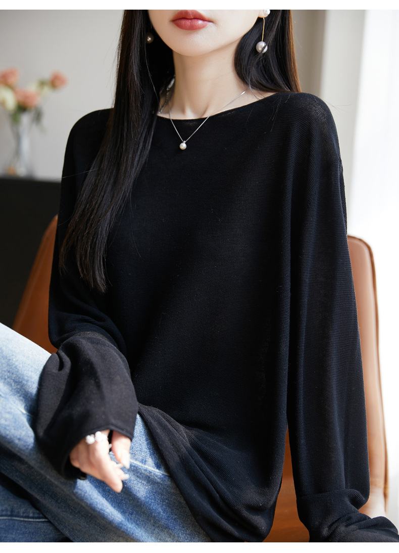 여성의 봄과 여름 느슨한 니트웨어 여성의 봄과 여름 느슨한 2025 새로운 에어컨 긴 소매 외부 착용 약간 게으른 스타일 탑