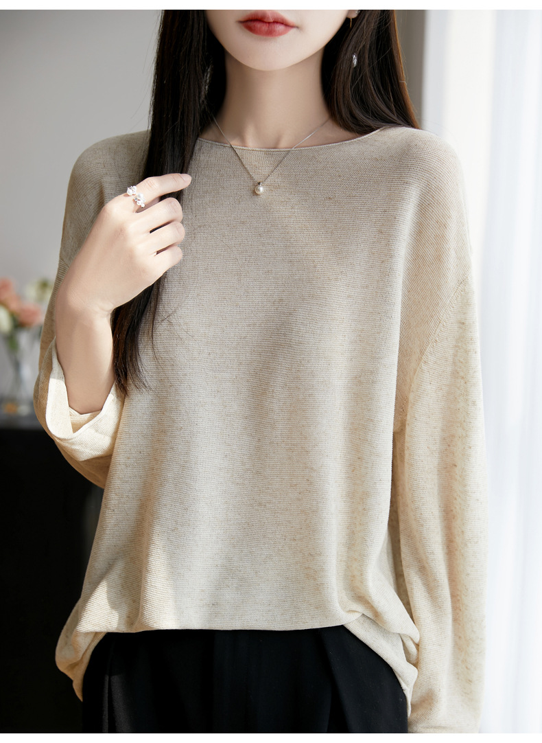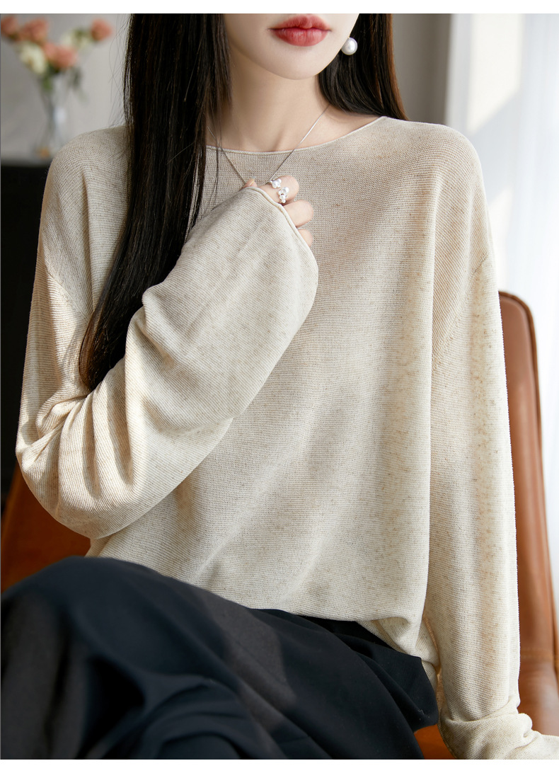 여성의 봄과 여름 느슨한 니트웨어 여성의 봄과 여름 느슨한 2025 새로운 에어컨 긴 소매 외부 착용 약간 게으른 스타일 탑스토어 가기