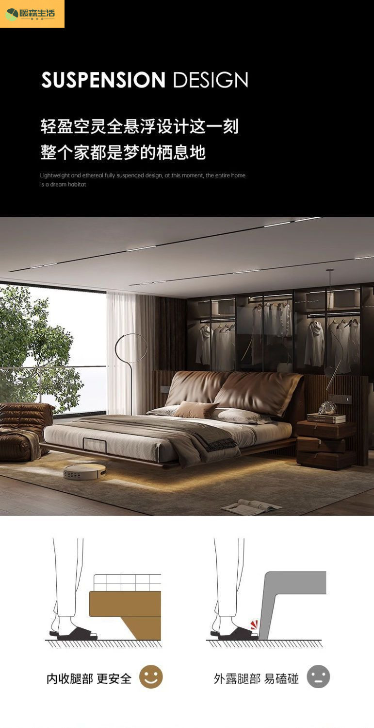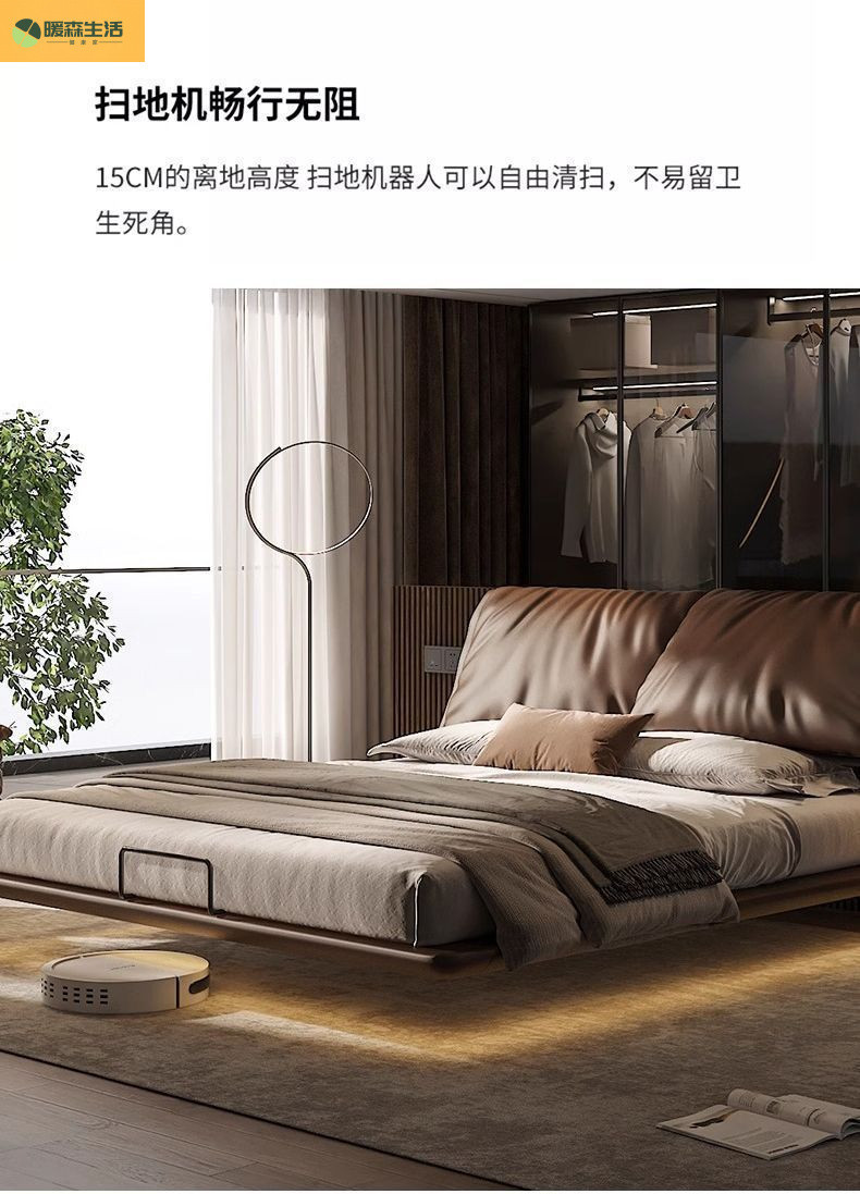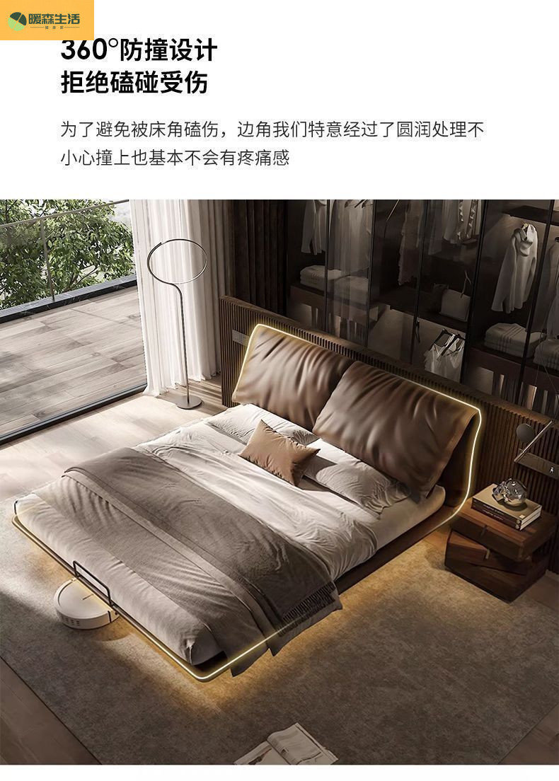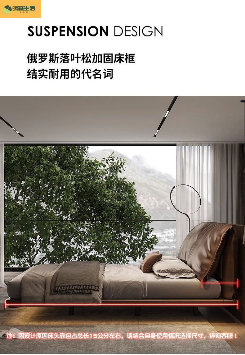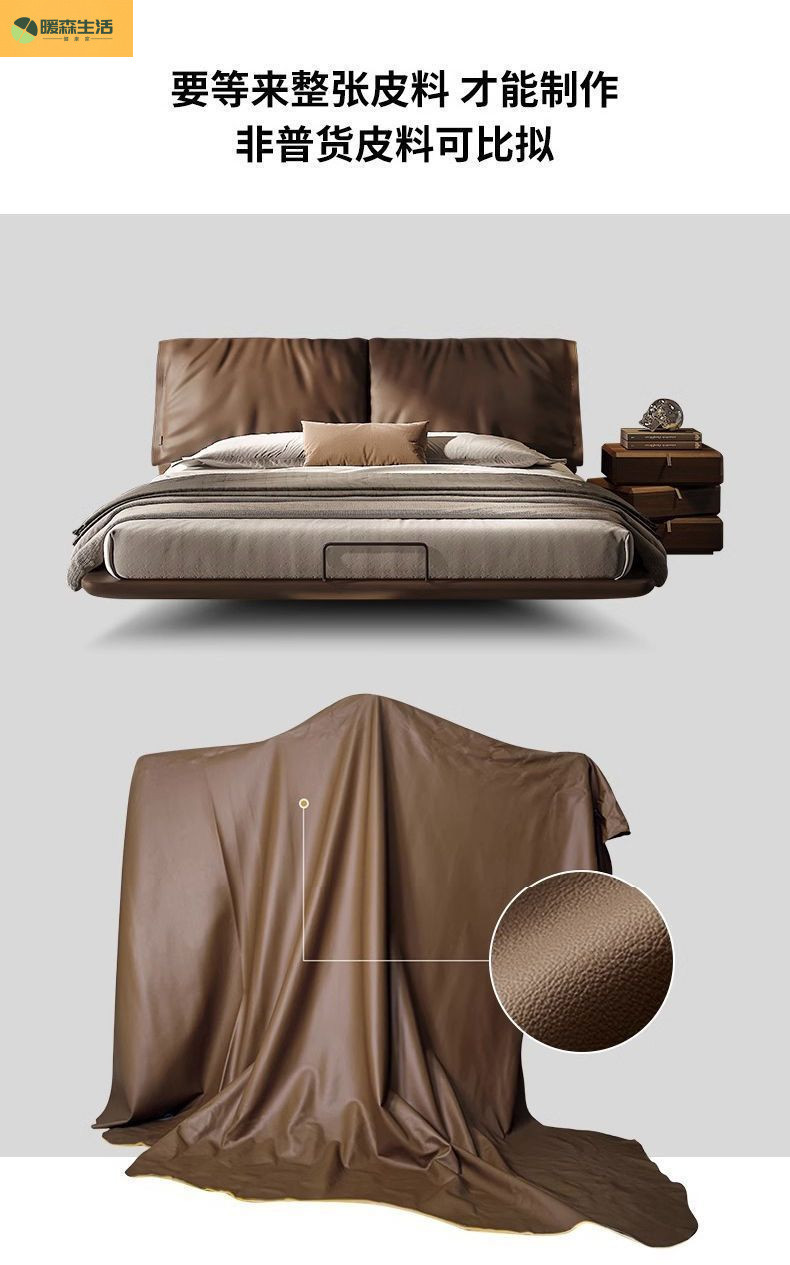 코끼리 귀 가죽 서스펜션 침대 이탈리아 스타일 미니멀리스트 크림 스타일 렌탈 룸 침실 크고 작은 아파트 큰 침대 웨딩 침대스토어 가기