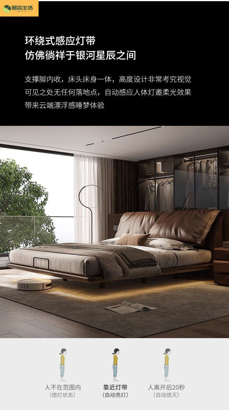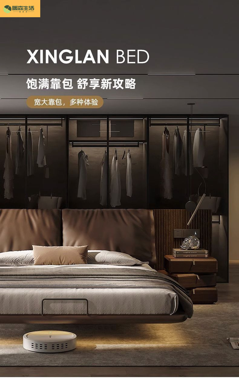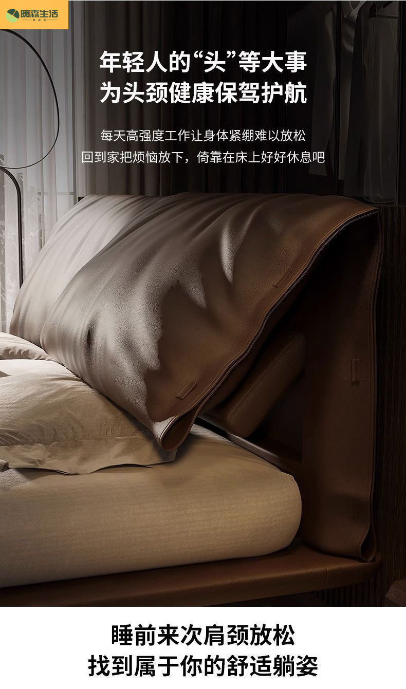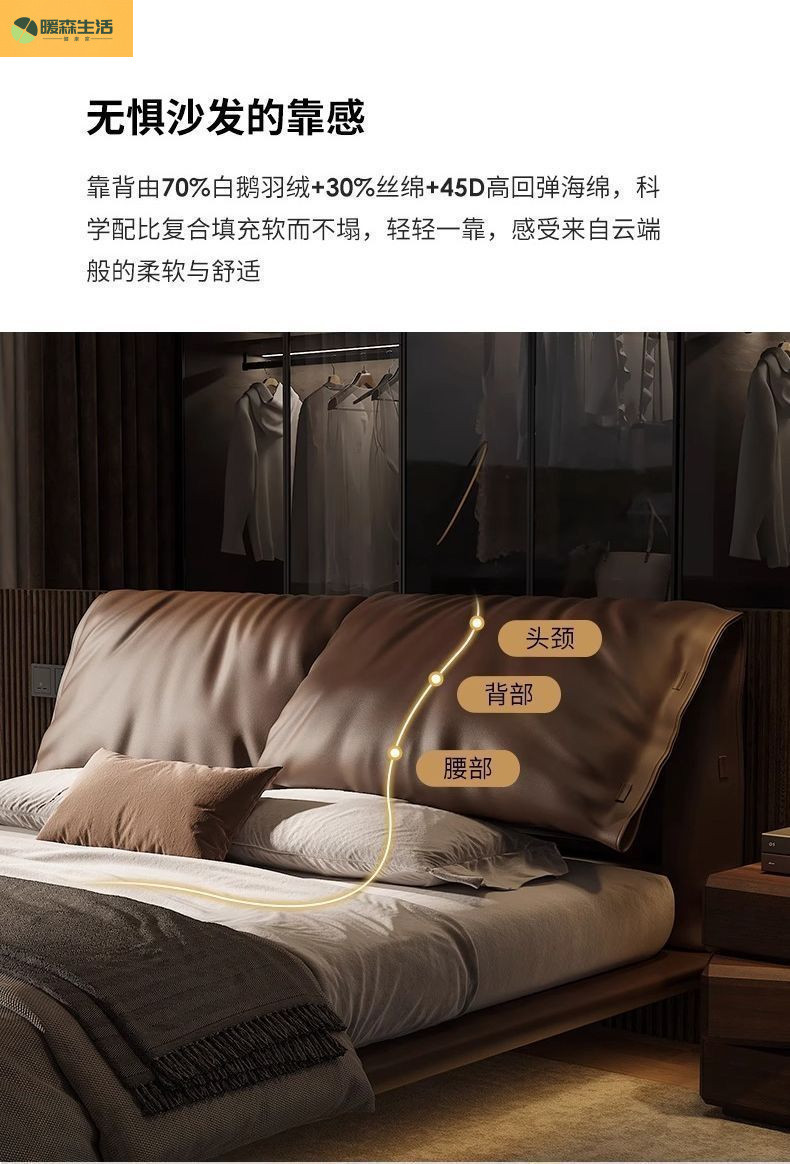코끼리 귀 가죽 서스펜션 침대 이탈리아 스타일 미니멀리스트 크림 스타일 렌탈 룸 침실 크고 작은 아파트 큰 침대 웨딩 침대스토어 가기
