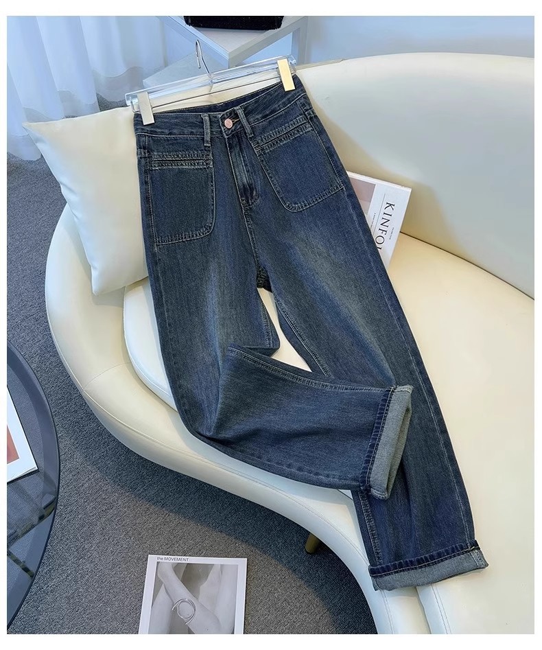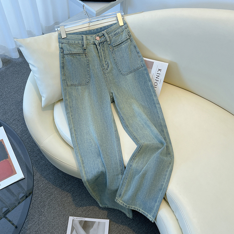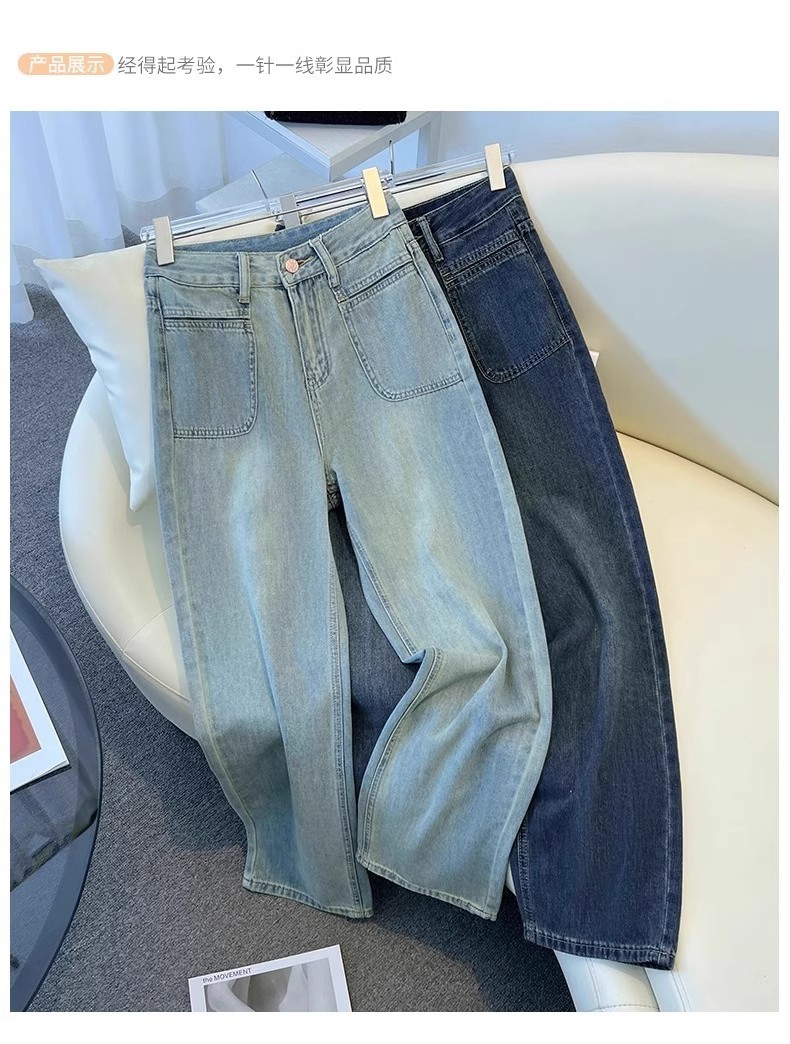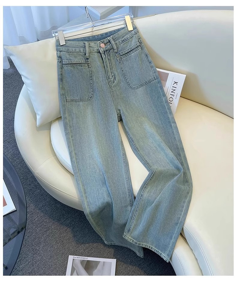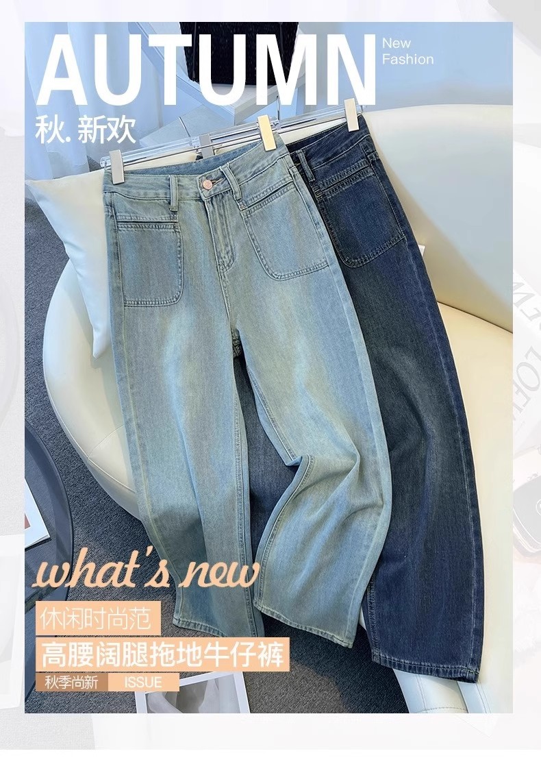넓은 다리 청바지 여성의 이른 봄 새 봄과 가을 짧은 좁은 키가 큰 느슨한 스트레이트 바지스토어 가기