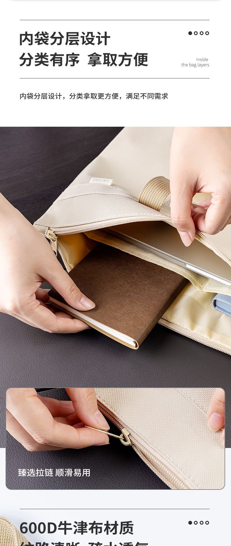 델리 서류 가방 63788 휴대용 다층 회의 문서 가방 사무실 비즈니스 지퍼 컴퓨터 가방 드롭 배송스토어 가기