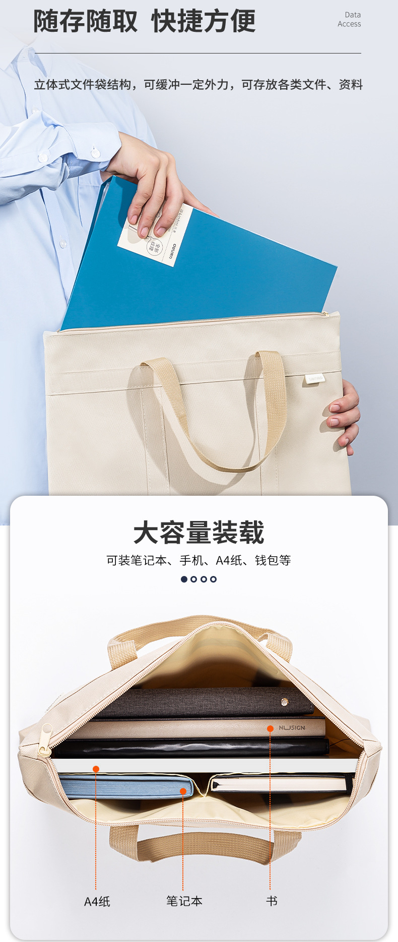 델리 서류 가방 63788 휴대용 다층 회의 문서 가방 사무실 비즈니스 지퍼 컴퓨터 가방 드롭 배송