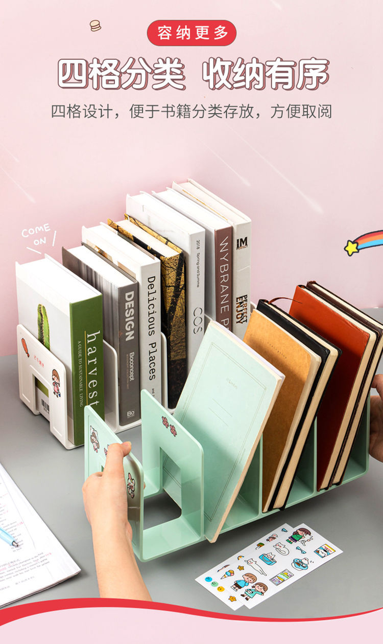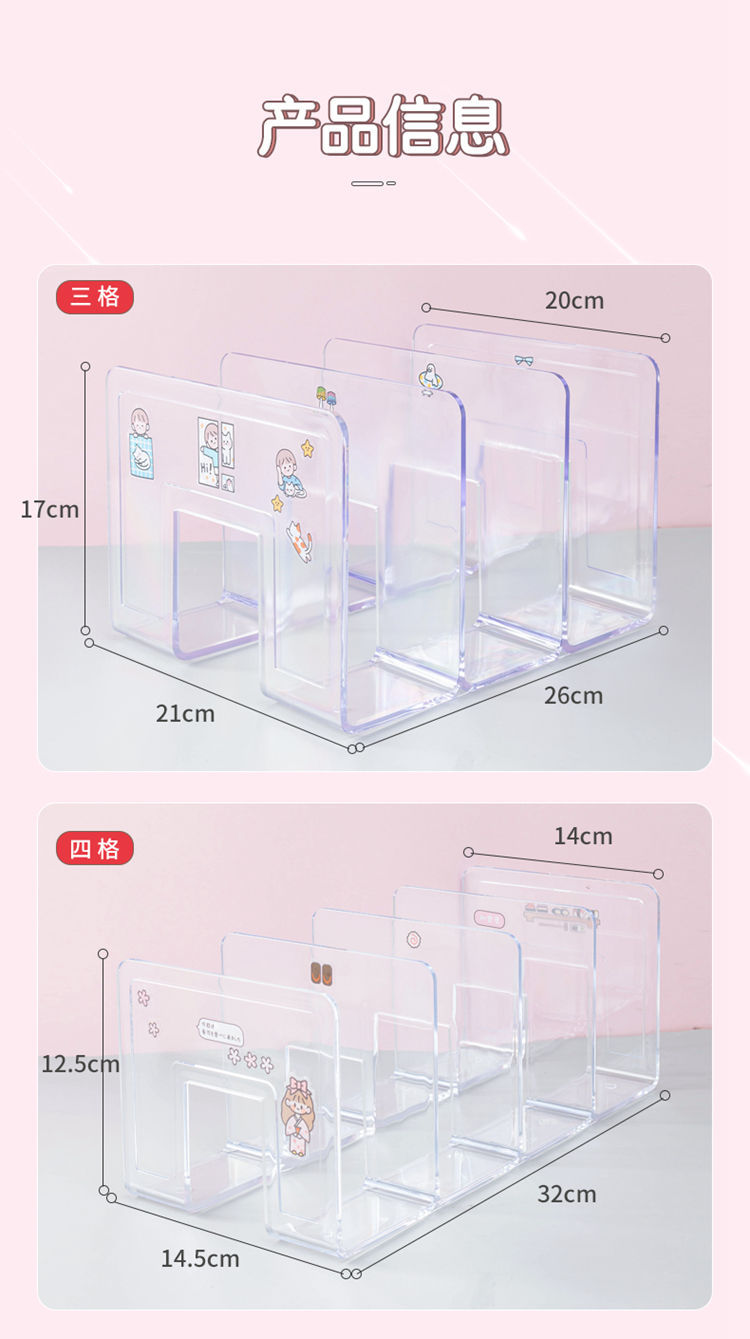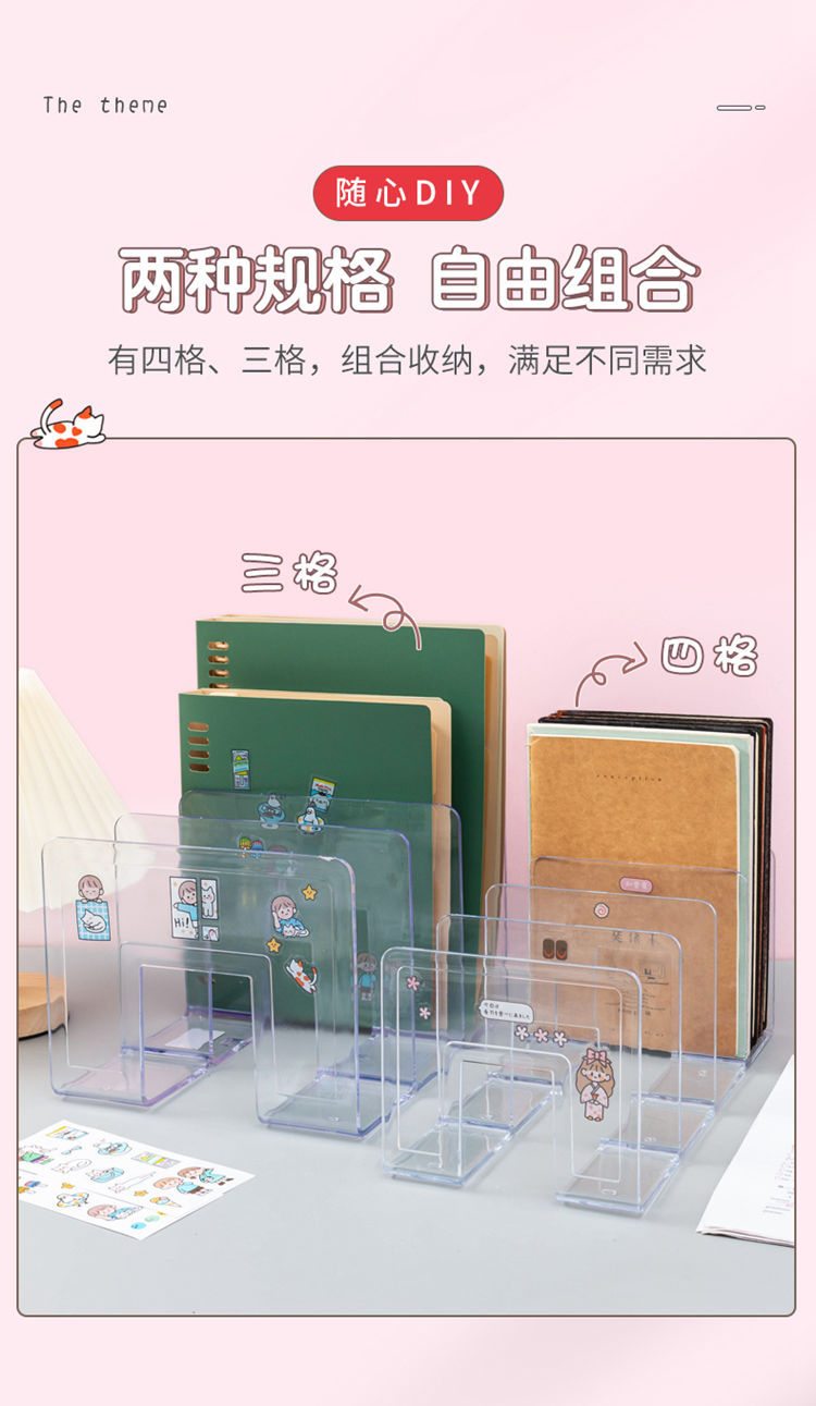 두꺼운 아크릴 책꽂이, 다중 칸 책 분리대, 사무실 책꽂이, 책상 책꽂이, 문구류 칸막이, 수납 책꽂이스토어 가기
