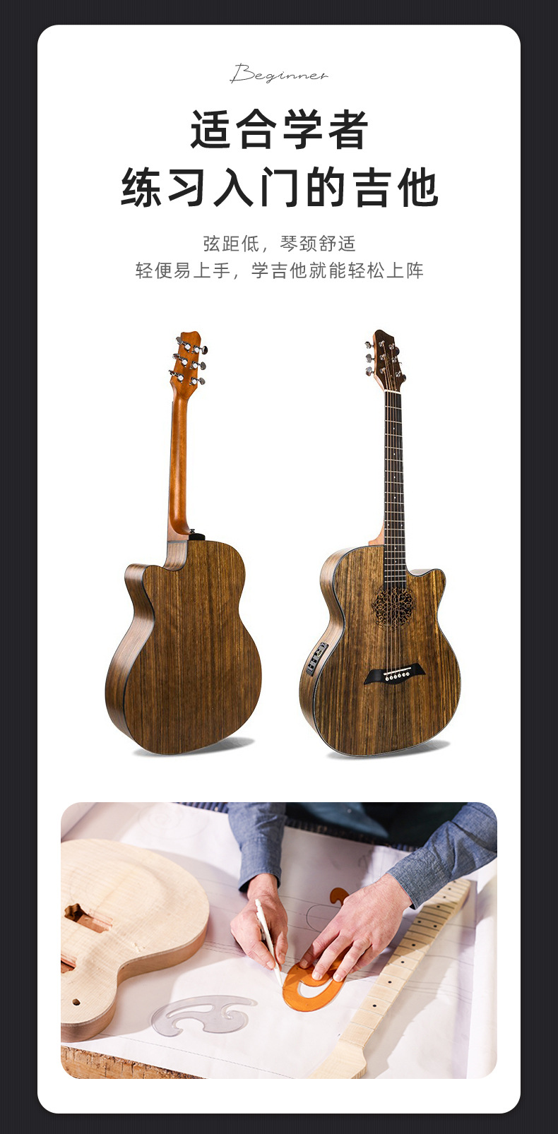 일렉트릭 박스 포크 기타 제조 업체 도매 어쿠스틱 기타 초급 학생 40inch 포크 기타 밝은 기타