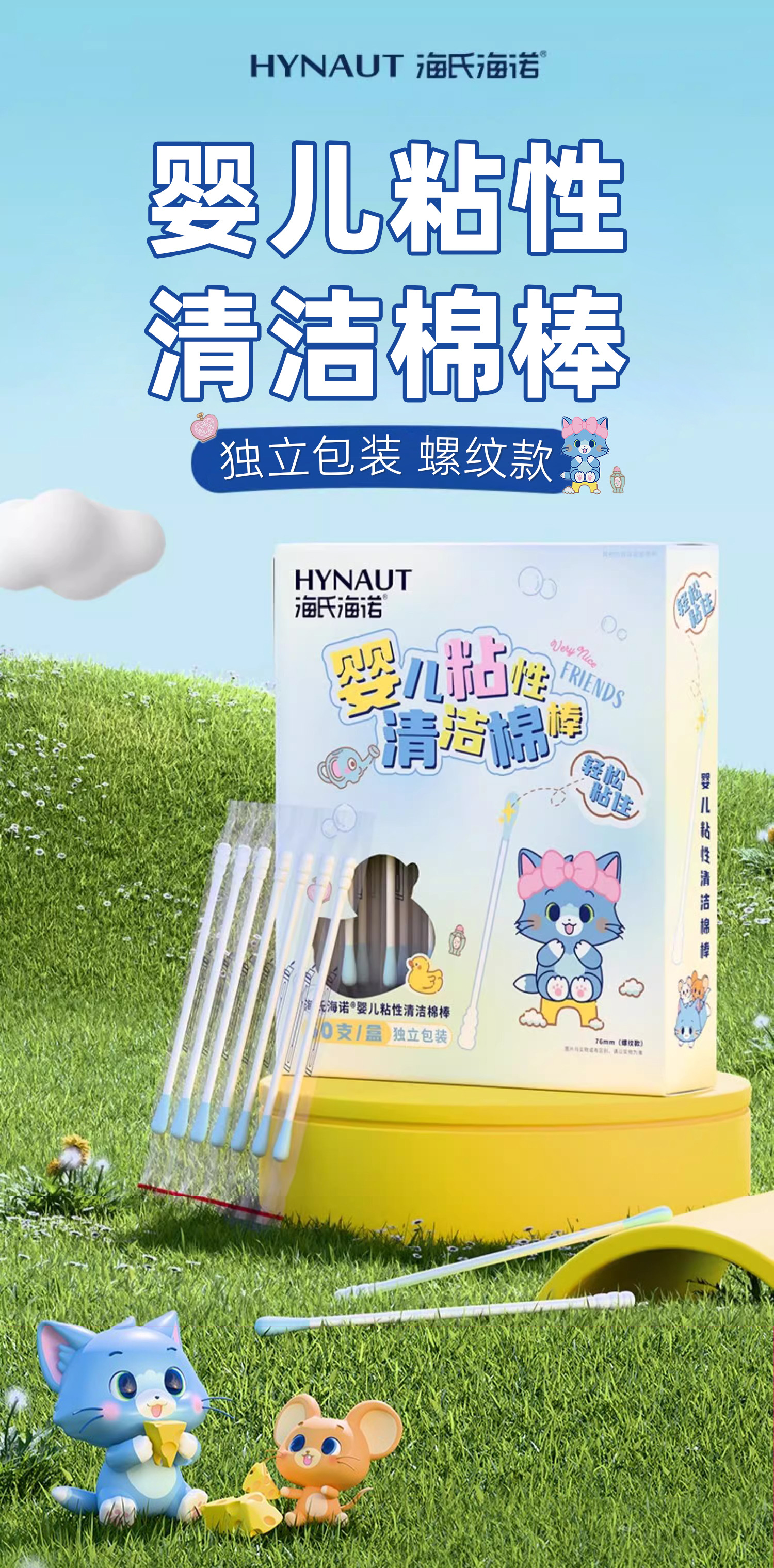 Haishi Hainuo 베이비 접착성 청소 면봉 개별 포장 접착성 스틱 플러스 나선형 양방향 면봉 정품 보장 아기스토어 가기