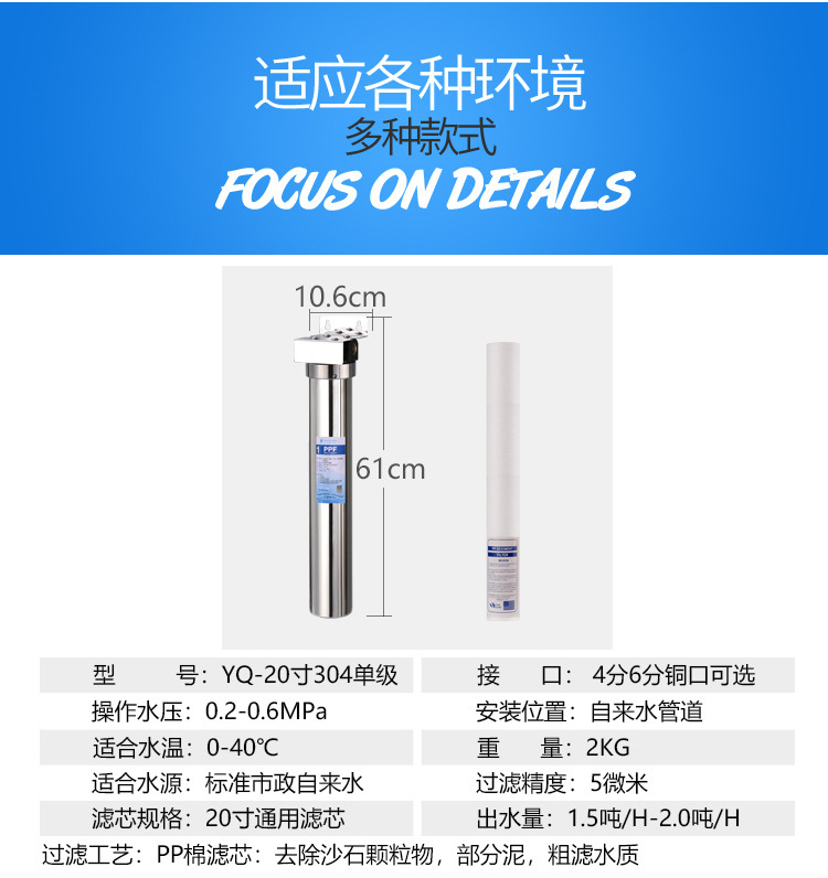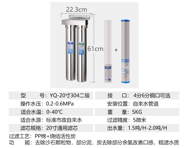 • 20inch 스테인레스 스틸 2차 필터★6포인트 구리 포트