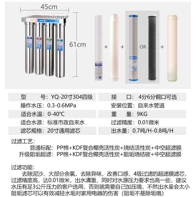 • 20inch 스테인레스 스틸 2차 필터★4포인트 구리 포트