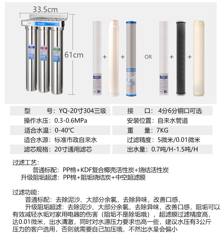 • 20inch 스테인레스 스틸 3단계 필터★6포인트 구리 포트