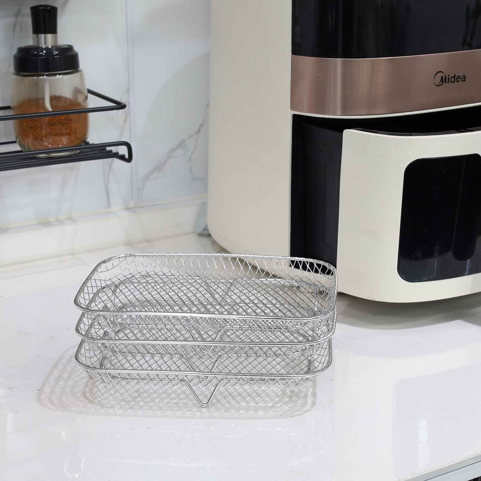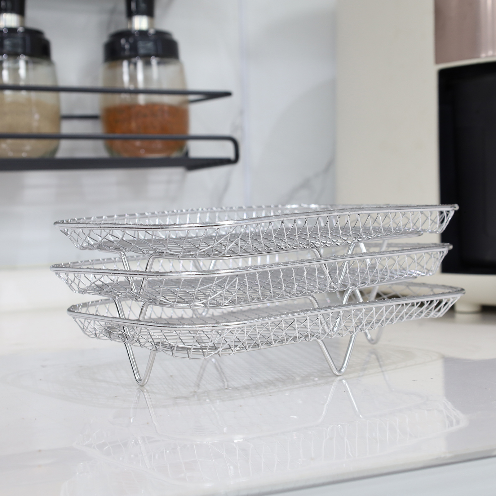 국경 3 층 304 스테인레스 스틸 에어 프라이어 그릴 탈수 랙 바비큐 그물 프라이어 액세서리 그릴 과일 및 야채 김이